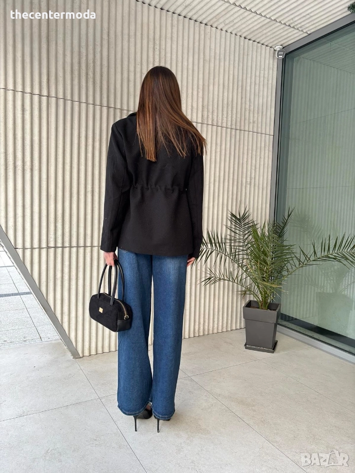 Черно дамско палто ,овърсайз модел ,което се събира в кръста.