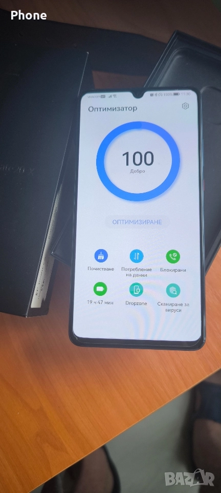 Пълен комплект кутия зарядно устройство силиконов кейс в идеално състояние. Има поставен стъклен протектор поддържа всички гугъл сървиси. Всичко по телефона работи идеално.