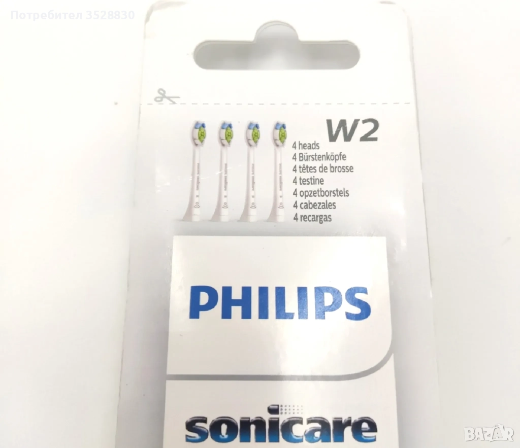 Оригинални накрайници за четки за зъби Philips Sonicare разфасофка HX6064/10 Бяла - 4бр. в опаковка цена 45лв. Накрайниците са запечатани в оригиналната си опаковка и са подходящи за почти всички четки Philips Sonicare, като са закупени от Германия.