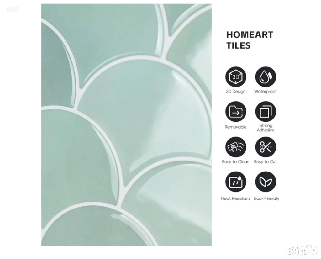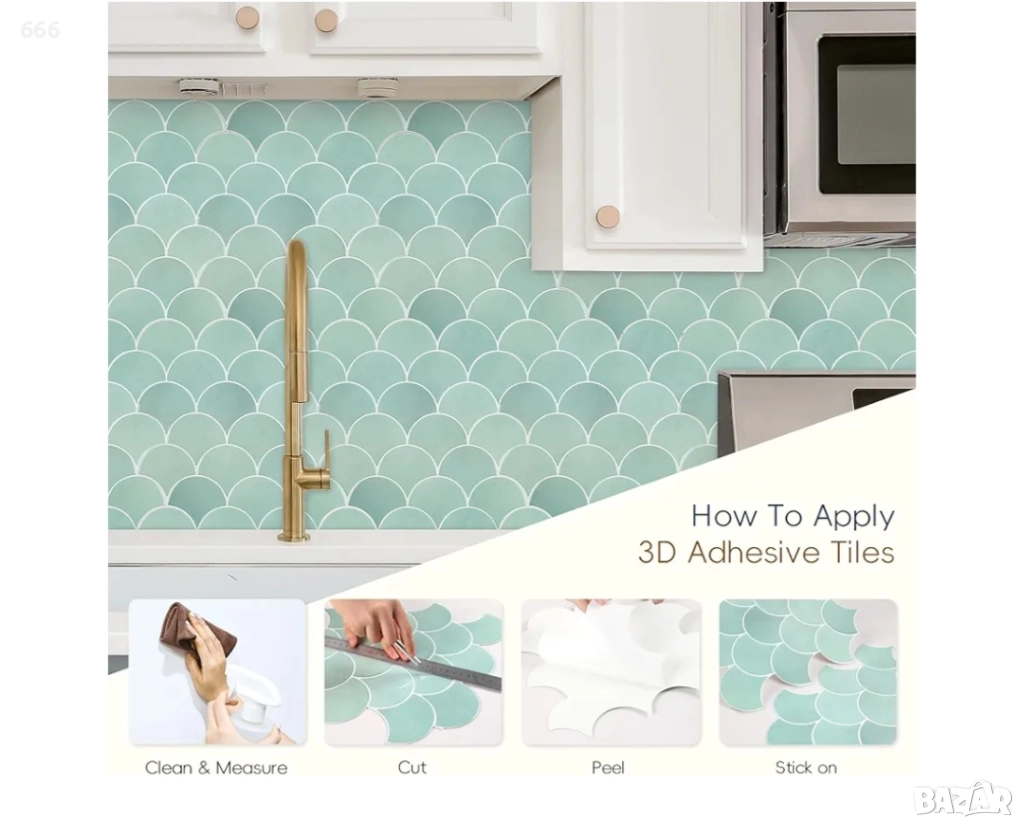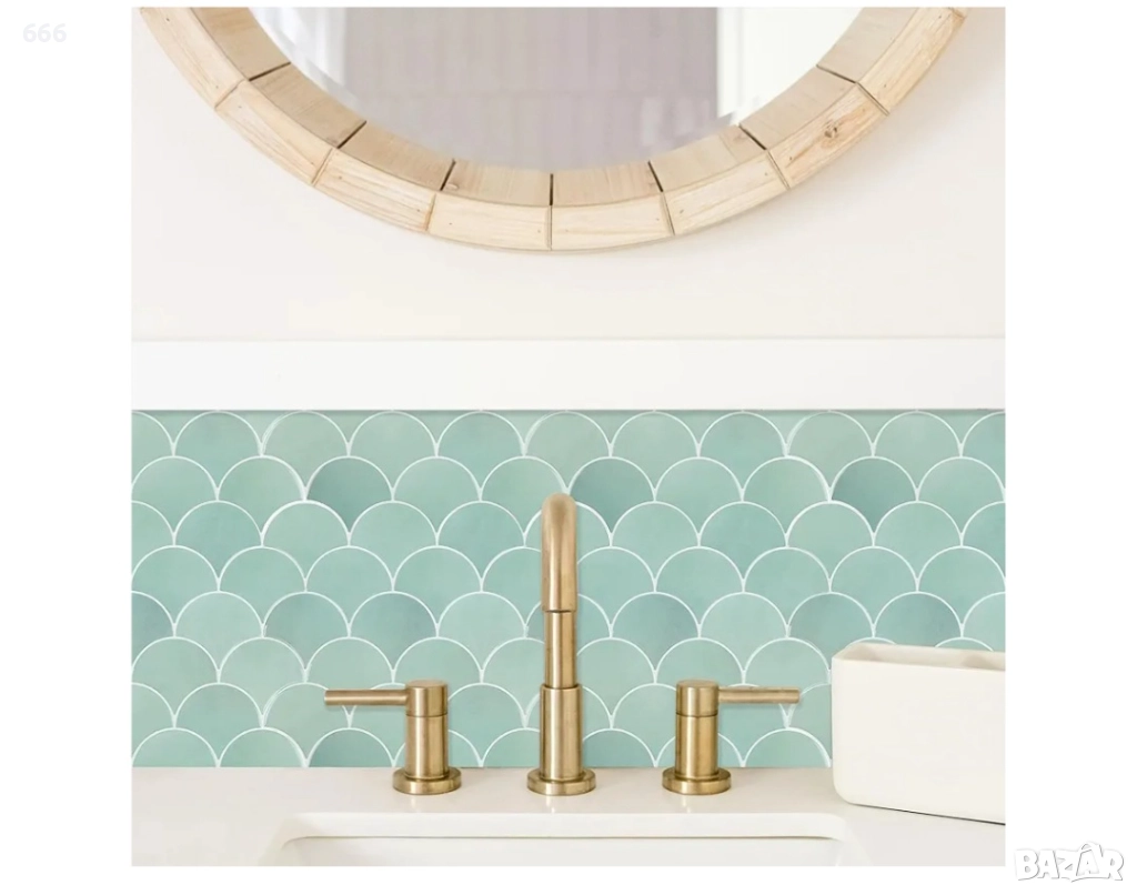 Реалистичен ефект на плочки: Ефект на ръчно изработени плочки, показващ уникални вариации, които добавят характер и чар на вашата кухня или баня. Формата на рибена люспа предлага отличителен вид, който се откроява сред стандартните опции за плочки.
