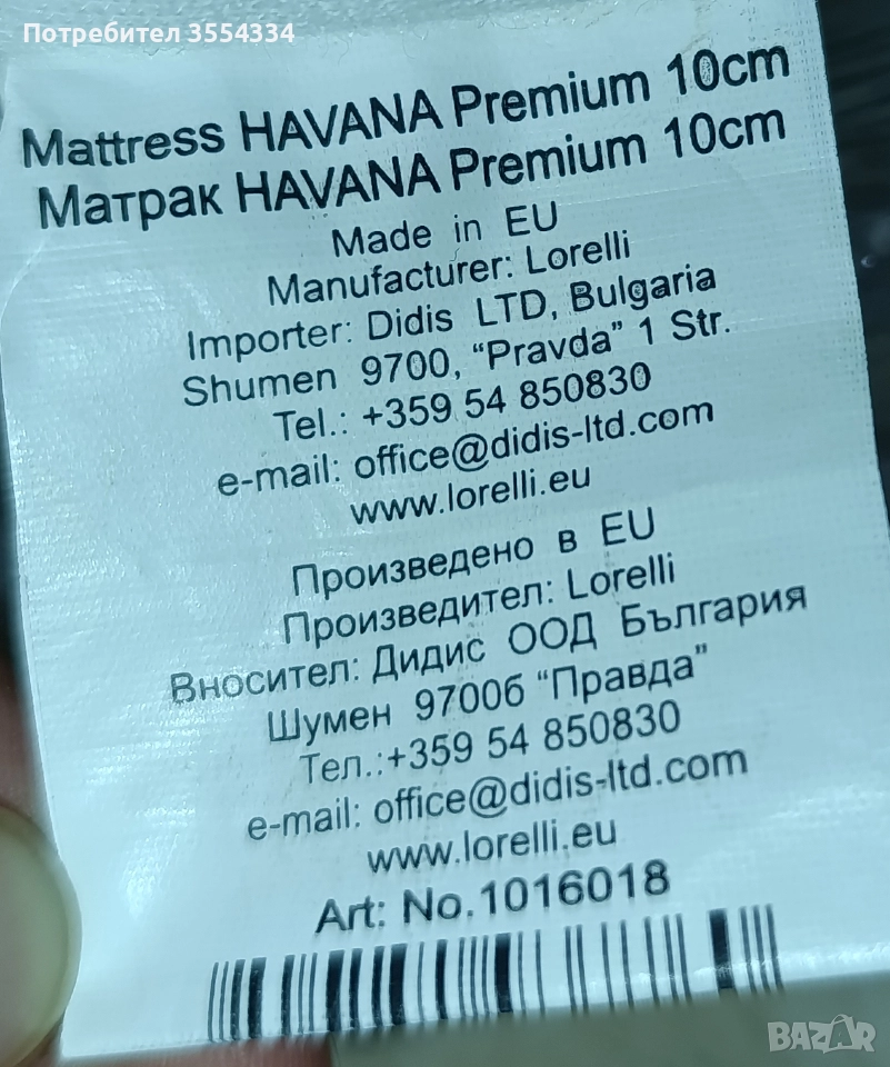 детски двулицев ортопедичен матрак lorelli havana premium 60/120/10, снимка 1 - Матраци - 52903784 детски двулицев ортопедичен матрак lorelli havana premium 60/120/10, снимка 2 - Матраци - 52903784 детски двулицев ортопедичен матрак lorelli havana premium 60/120/10, снимка 3 - Матраци - 52903784 детски двулицев ортопедичен матрак lorelli havana premium 60/120/10, снимка 4 - Матраци - 52903784 1/4