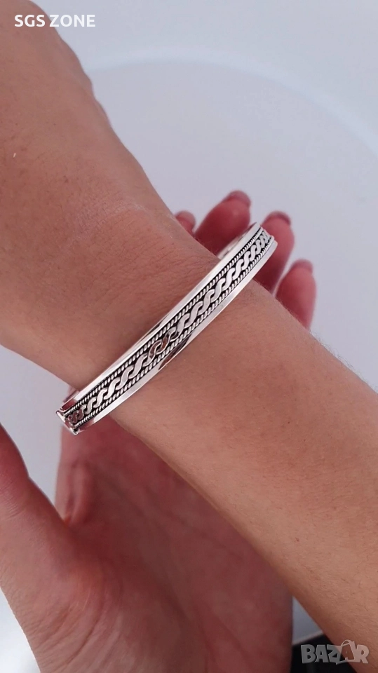 Стилна гривна от сребро 925. Още снимки и видеа на продукта в Instagram и Facebook sgs.zone, уебсайт sgs.zone. Можем да изпратим допълнителна информация чрез Viber. Изпращане Speedy и Эконт. Шоурум в София, Дондуков, 53. Всички продукти са със сертификати и подаръчна кутия. Продукти имат допълнителни български маркировки