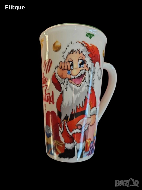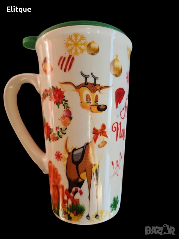 Коледна порцеланова чаша с гумен капак 15см височина. ?ВАРИАНТИ: картинка С еленче или с Дядо Коледа. С височина от 15см, тази чаша е идеална за вашето горещо какао, чай или кафе по време на Коледните празници. Не само че предоставя уют и топлина, но и съхранява напитката ви топла благодарение на гумената капачка. ? Изработена от висококачествен порцелан, тази чаша не само е стилна, но и изключително издръжлива. Подарете си и на своите близки моменти на удоволствие и комфорт с нашите Коледни порцеланови чаши! ??❤️