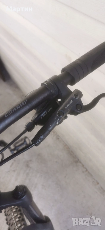Алуминиев велосипед 27.5 цола CONWAY, хидравличн спирачки на shimano 3x9 палцови скорости на shimano, вилка заключваща се от кормилото. Велосипеда е във перфектно състояние работи супер това е което се вижда на снимките размер Л внос от Германия