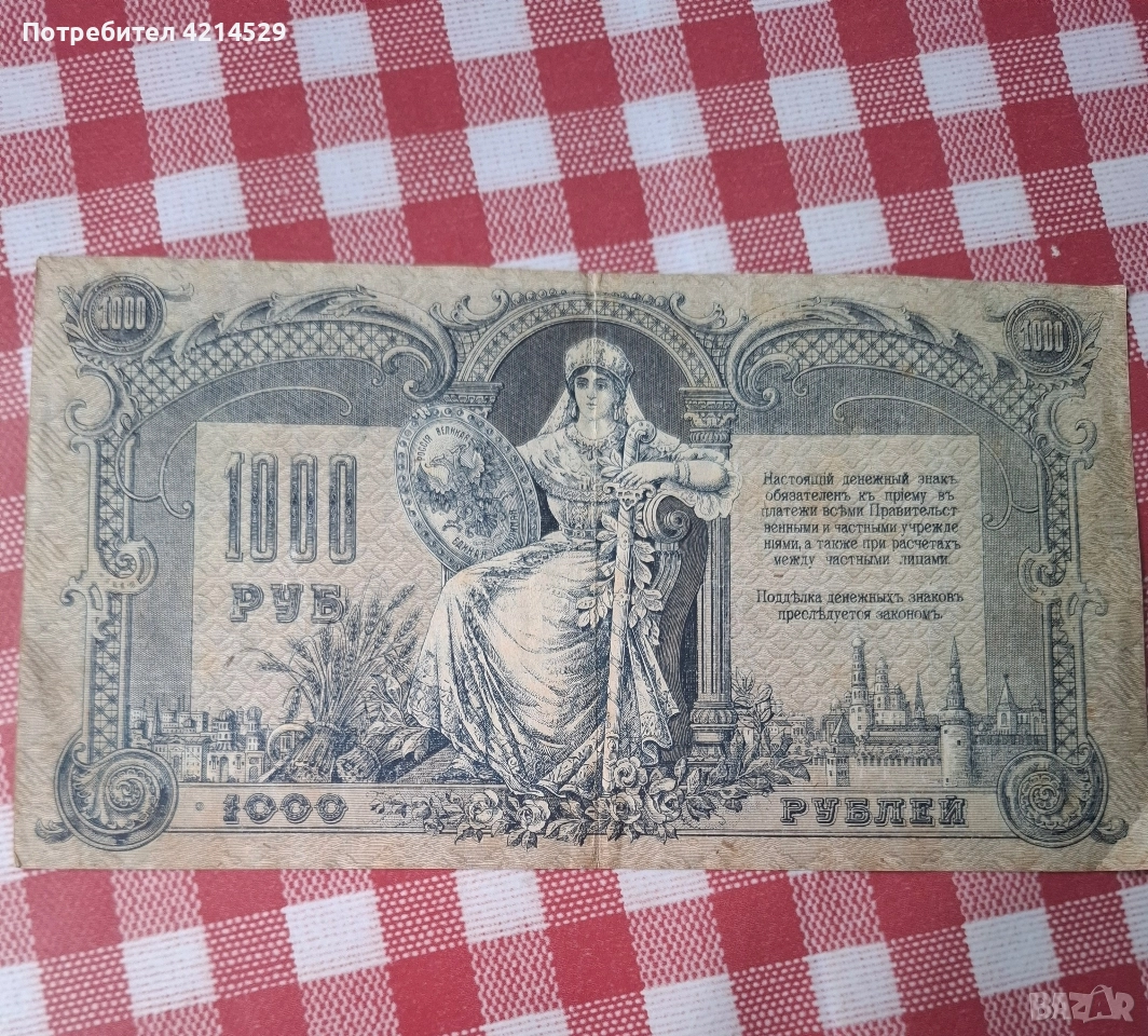 Банкнотата е емисия от 1000 рубли от 1919 г. от силите на Бялото движение в Южна Русия по време на Руската гражданска война
