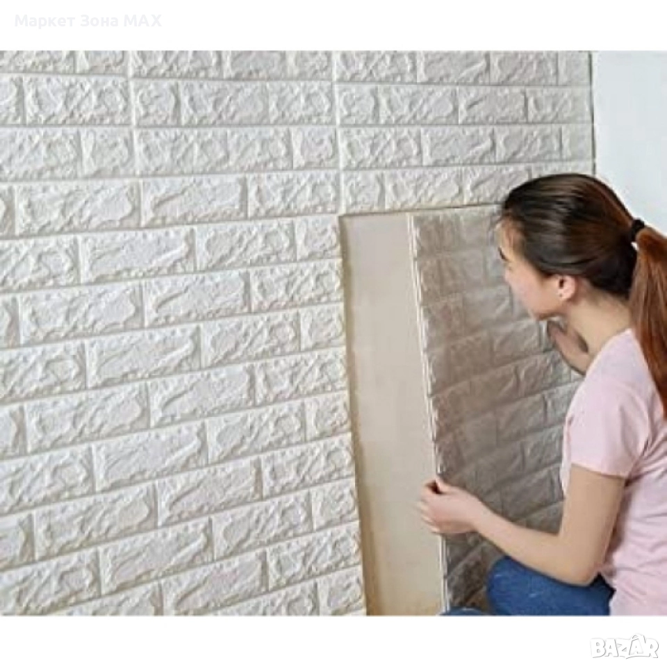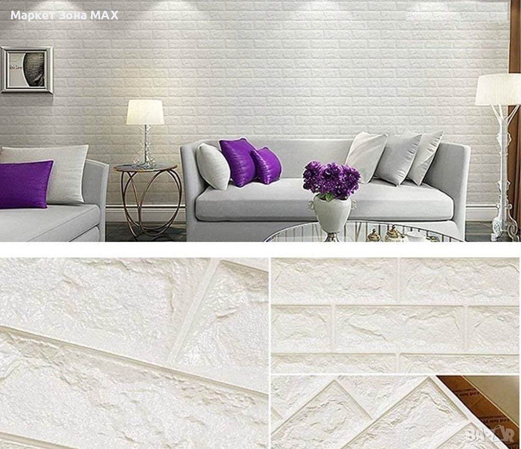 Декоративен Бял 3D тухлен тапет за стени от PE пяна 77х70 см.