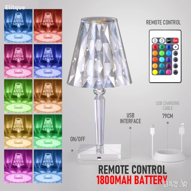 Конусовидна декоративна настолна лампа с usb кабел и дистанционно - тип кристална лампа. Представете си вашия дом озарен от бляскава и модерна декоративна кристална настолна лампа с USB кабел и дистанционно управление. Тази елегантна лампа не само осветява вашето пространство, но и добавя стил и уют към всяка стая. С дистанционното управление, което е включено, можете да променяте цветовете на светлината въз основа на вашите настроения и предпочитания. Изберете от разнообразие от цветове и нива на интензивност, за да създадете точно тази атмосфера, която желаете. Лампата се захранва чрез USB кабел, което я прави изключително удобна и практична. Можете да я свържете към компютър, лаптоп, стенен адаптер или дори портативно зарядно устройство. Това ви дава свобода да я поставите където пожелаете без ограничения.