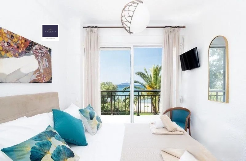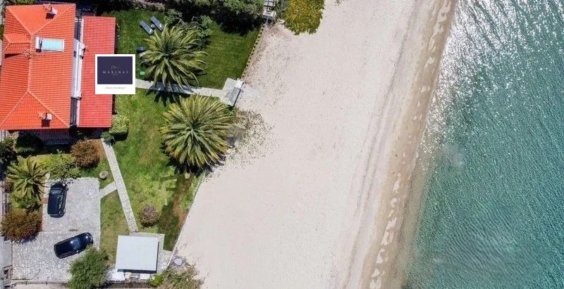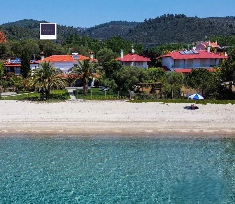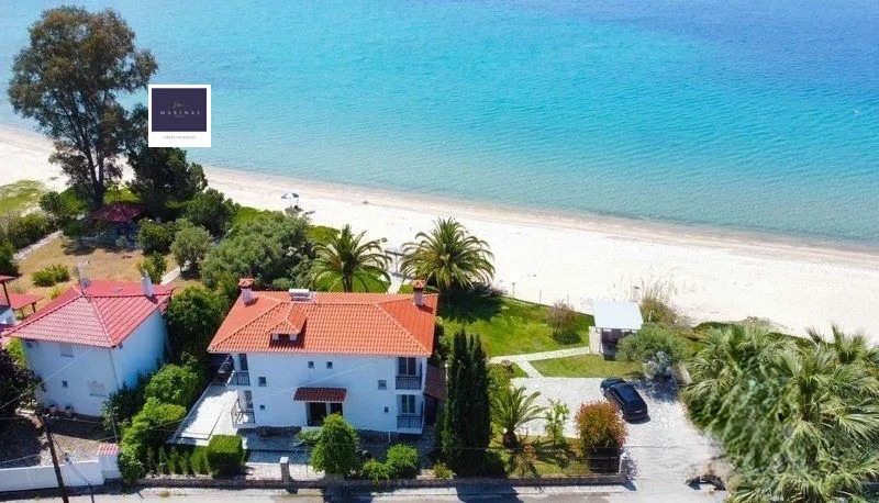 'Маринас Естейтс' Ви представя един прекрасен имот, който трудно се намира, а именно напълно обзаведена луксозна,двуетажна къща, намираща се на самия бряг на прочутия плаж Лагомандра, един от най-красивите заливи в Ситония.