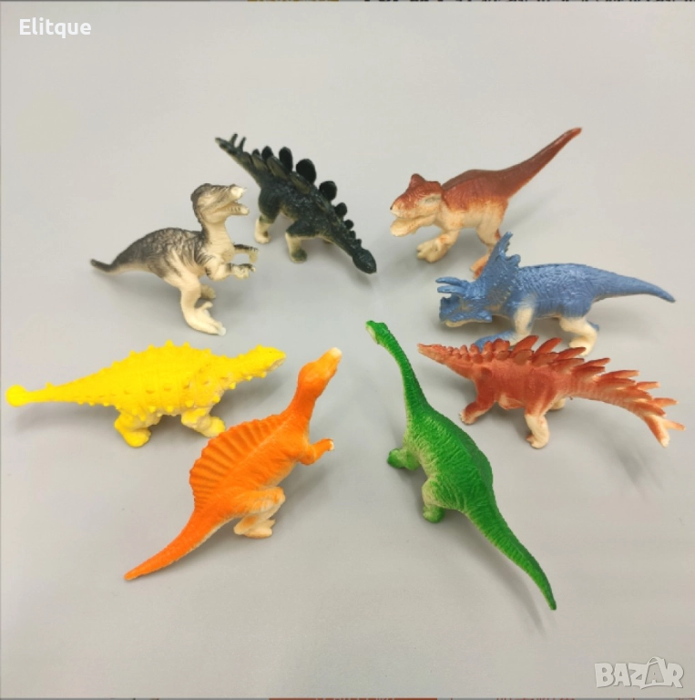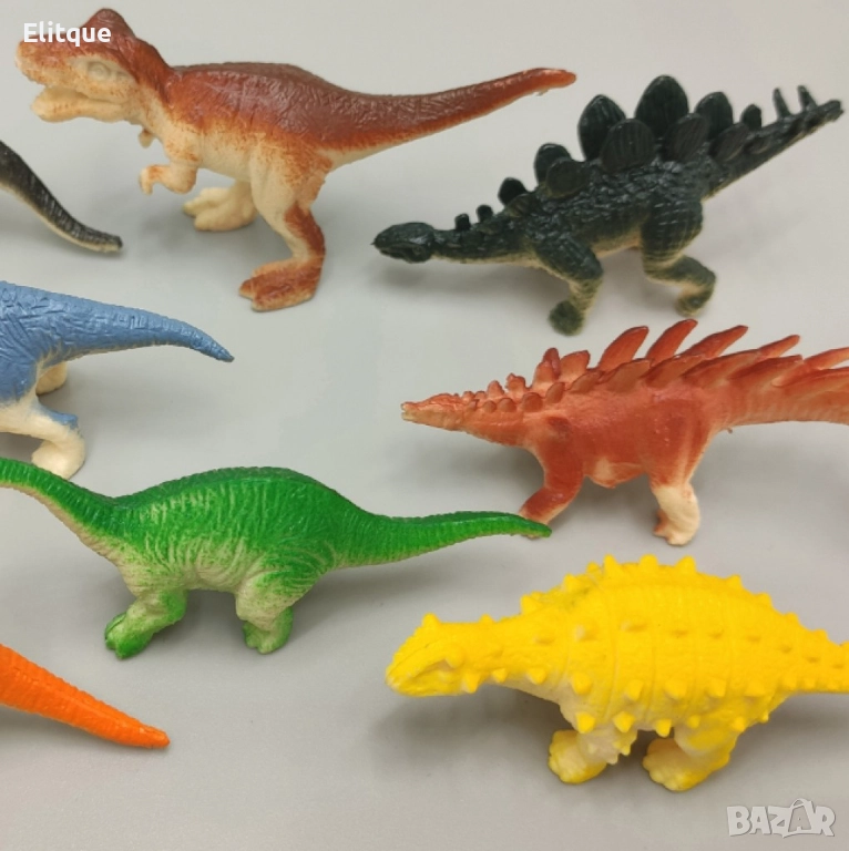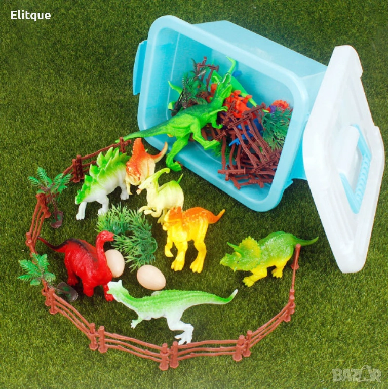 Комплект играчки – различни видове динозаври / Комплект от фигурки на динозаври, които са изработени от безопасни материали и идват с различни форми, размери и видове. Съчетават в себе си множество видове динозаври, включително летящи, тревопасни, месоядни и т.н. Помагат на детето да развие своята любов към тези праисторически създания и, при това, да се забавлява – било то само или в компания.