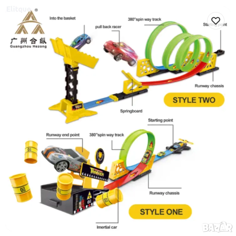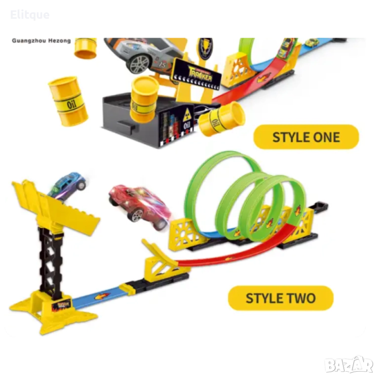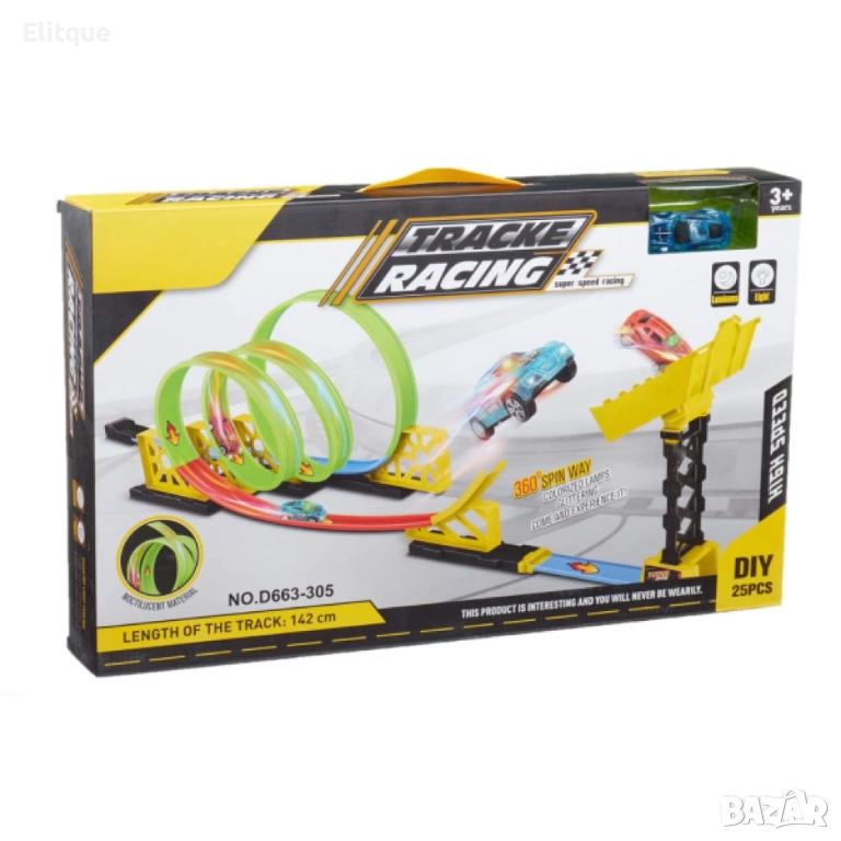 Играчка състезателно трасе с колички / Осигурява дълготрайно забавление; Издръжлива и регулируема; С множество опции за игра; Безопасни материали; Наситени цветове; Стабилност и устойчивост;