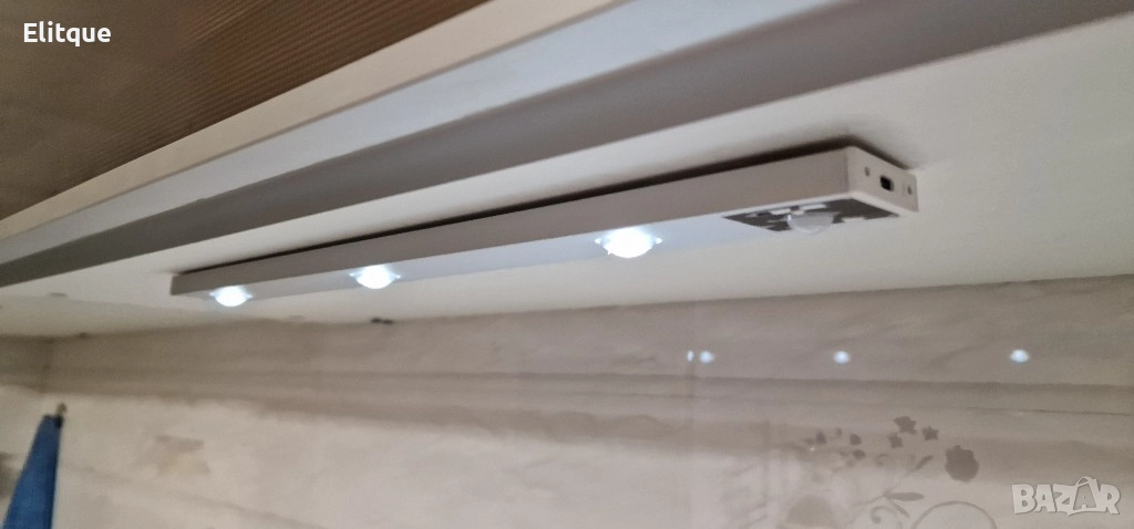 Безжична LED лампа със SMART режим. USB зареждане. Налични варианти на дължина: 40/60/80 см. Бутон за влючване и изключване с 4 режима - 1) постоянна светлина; 2) автоматично свети на тъмно, чрез сензора за движение; 3) автоматично свети на тъмно и светло, чрез сензора за движение; 4)изключване; Време за зареждане: около 3 часа, с издръжливост над 30 дни. Поставянето става, благодарение на самозалепващи магнитни, които се поставят на конкретния шкаф. След това лампата може да се закача и откача за зареждане по всяко време, благодарение на магнитния механизъм.
