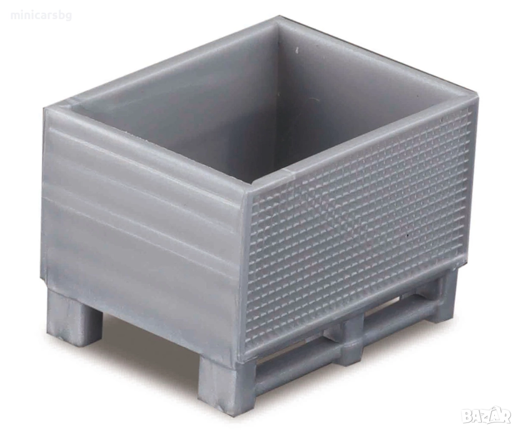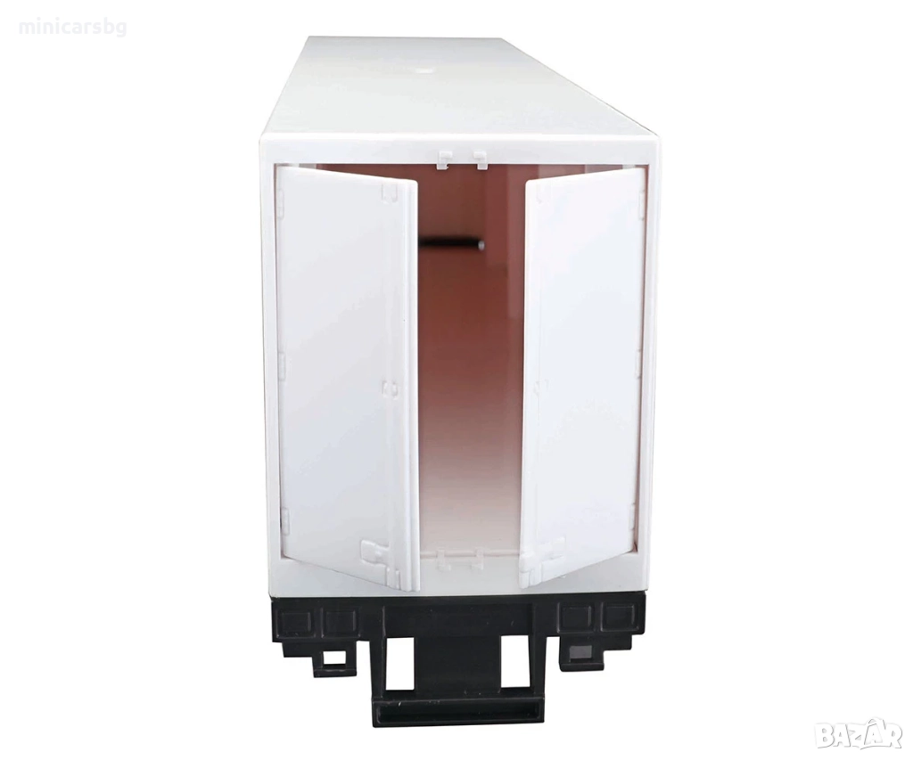 Ремаркето е детайлно изработено, с отваряеми задни врати и опорни крака, а вътре има място за палети и контейнери. В комплекта влиза и мотокар с подвижни вилици, който може да „товари“ включените палет и касетка – идеален за игра на логистичен терминал или за витрина до други камиони в мащаб 1:43.