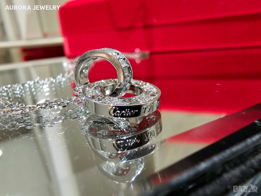 CARTIER Love White Gold Paved Diamonds Chain Дамскo Колие → Обява 52905162