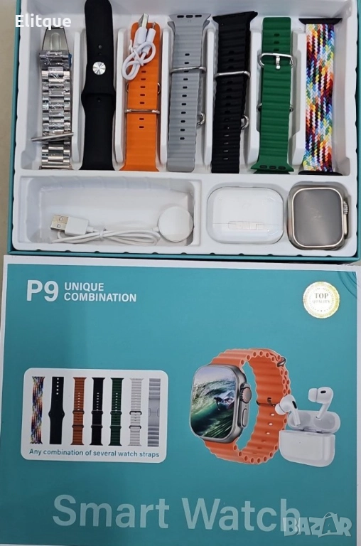 Смарт часовник P9 със слушалки и 7 различни каишки