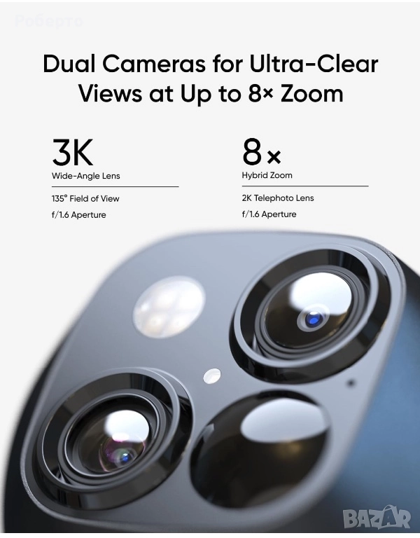 Уловете всяко събитие, което се случва в дома ви, с ултра ясна 3K резолюция. Вижте точно кой се приближава до дома ви с 8x увеличение.