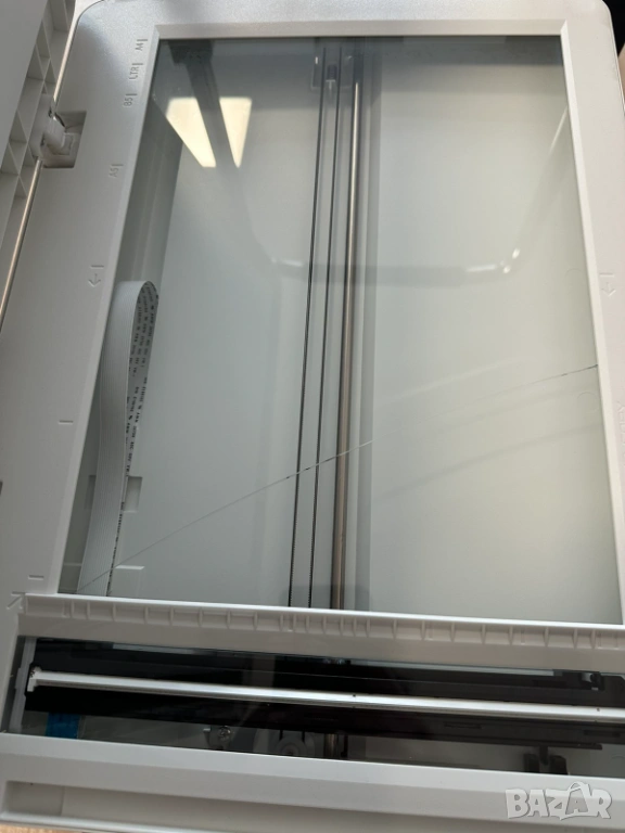Има транпортен дефект - пукнато стъкло на скенера (погледнете поледната снимка), но може да сканира безпроблемно през ADF механизма.