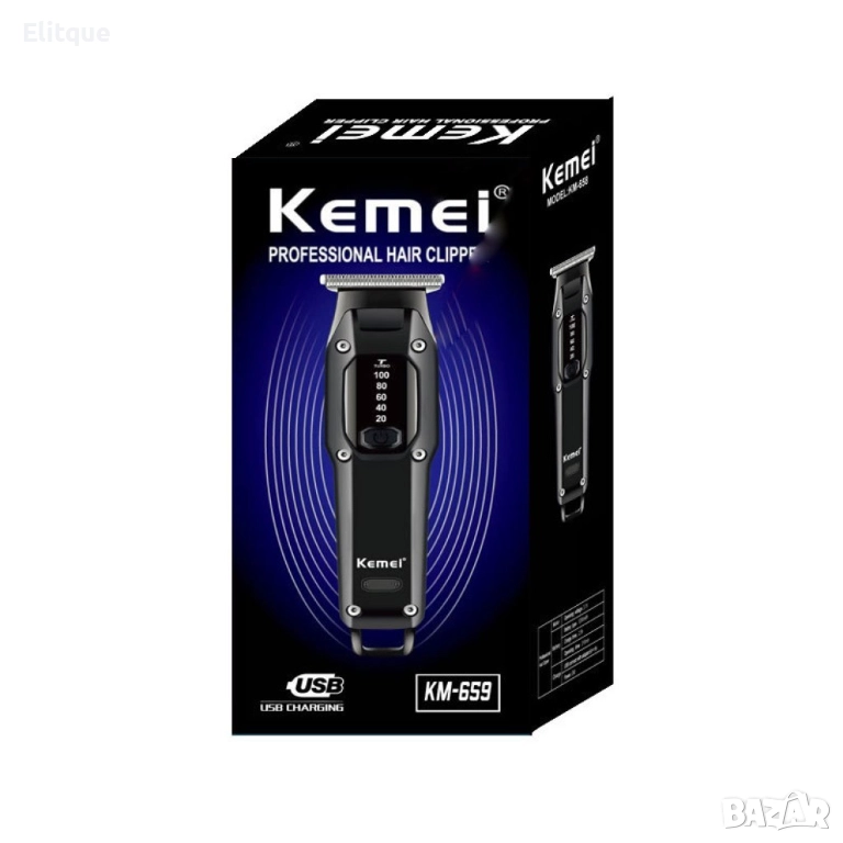 Машинка за подстригване Kemei с голям капацитет на батерията / Батерия: Литиево йонна / Време за зареждане: 90мин/ Време за работа: 90мин/ Приставки: 1мм,2мм и 3мм / Материал на острието: Неръждаема стомана / Материал на ножа: Фина стомана / Мощност: 5W / Вход: 3.2V