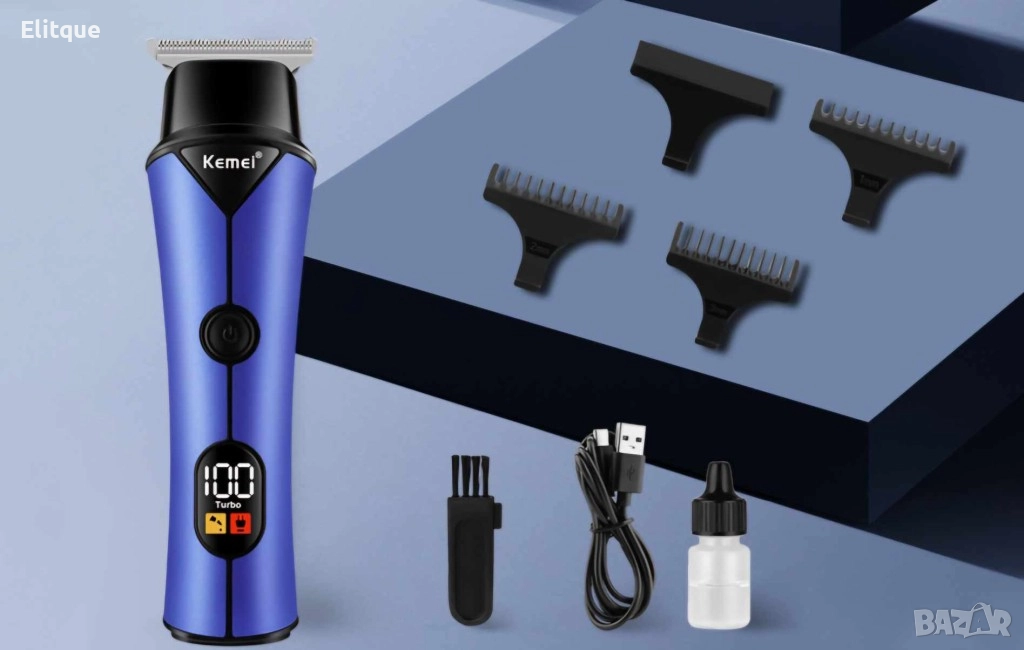 Професионална безжична машинка за подстригване Kemei KM-641 / Дълъг живот на батерията / Батерия: Литиево йонна 600mAh/ Type C /LCD дисплей/ Време за зареждане: 1,5часа/ Време за работа: 120мин/ Приставки: 1мм, 2мм и 3мм / Нож от неръждаема стомана, ширина 40 mm / Мощност: 5W