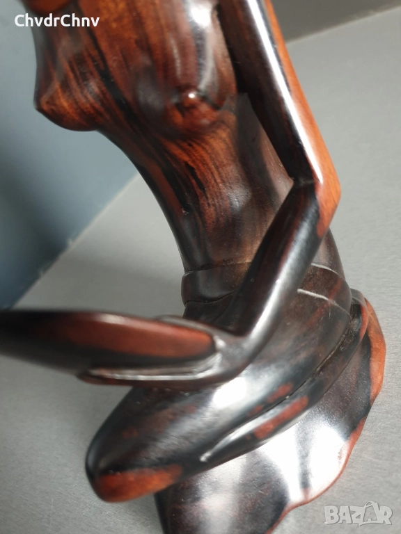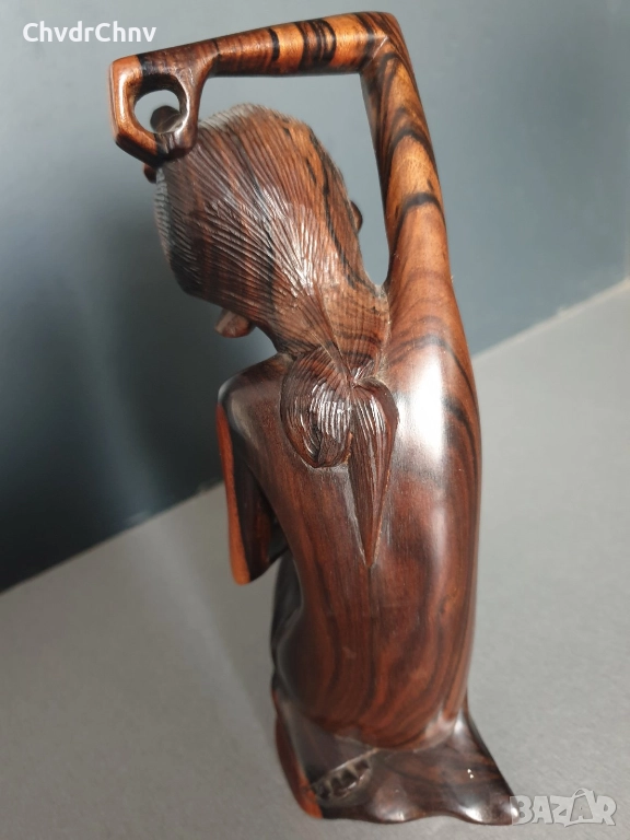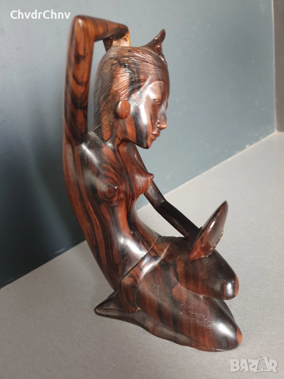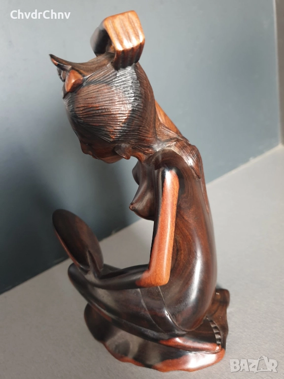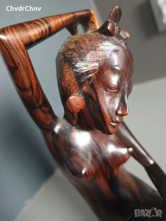 Ръчна обработка на дървото (не е отливка/паста), направена е от розово дърво (единичен къс, не е сглобявана/лепена), производство Бали Индонезия, без забележки.