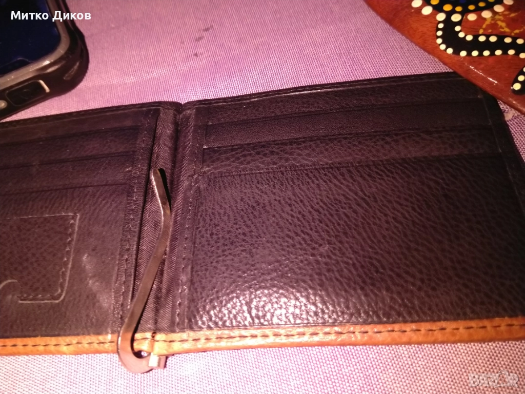 Щипка за пари и документи-карти 110х 90 мм естествена кожа кафяво черна → Обява 52905688
