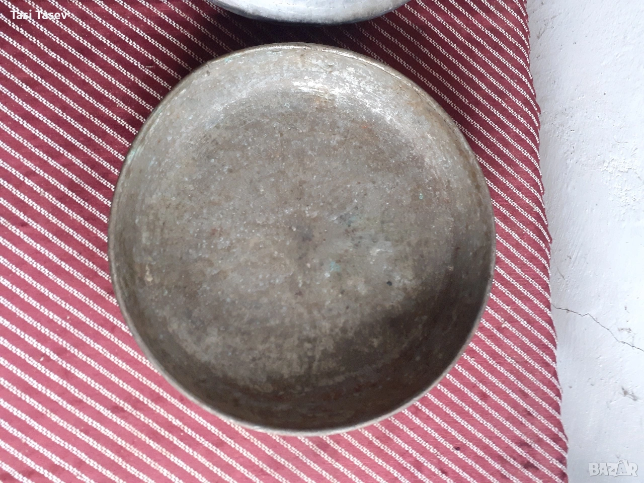 1.Стара медна(бакърена) тава. Здрава е. Диаметъра и е 29 см и дълбочината ме е 6 см. Цена 15 евро.