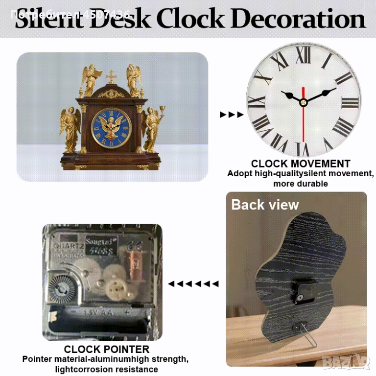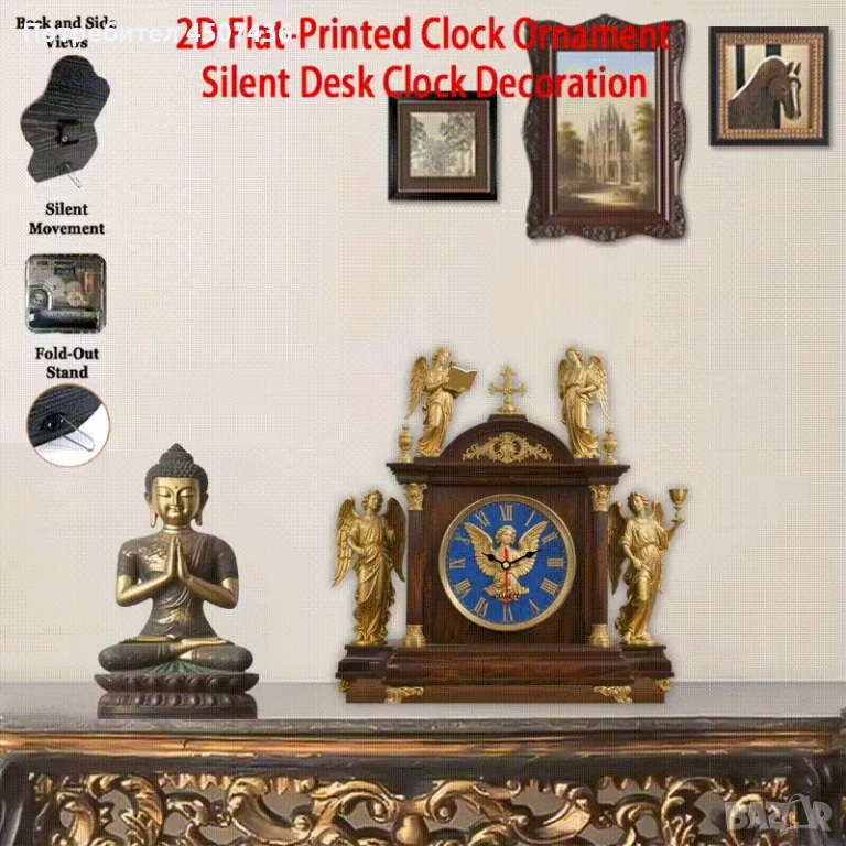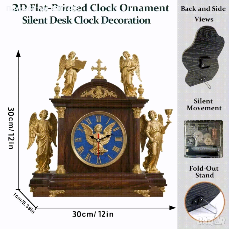 2D Плосък Европейски Стил Дървен Часовник, Тих, Работи на Батерии → Обява 52905950