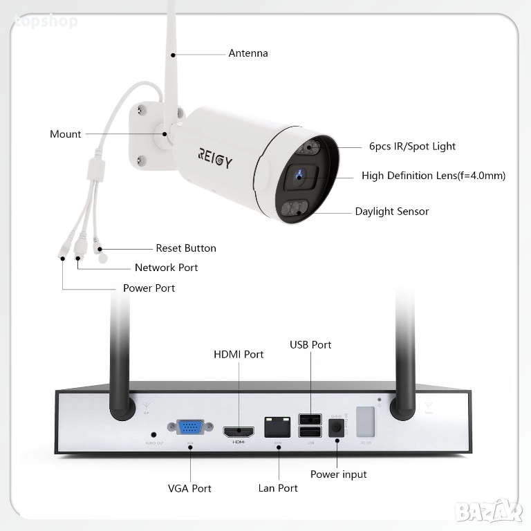 【Здрав метален корпус, устойчив на всякакви метеорологични условия】Ако обмисляте инсталирането на безопасна и стабилна система за наблюдение за вашия дом, това е абсолютно най-добрият избор. В сравнение с обикновените пластмасови корпуси, металният корпус може да защити електронните компоненти вътре в камерата в тежки условия (работна температура: -20°C~50°C). По-доброто разсейване на топлината ще направи камерата REIGY вашият по-надежден партньор през следващите години.