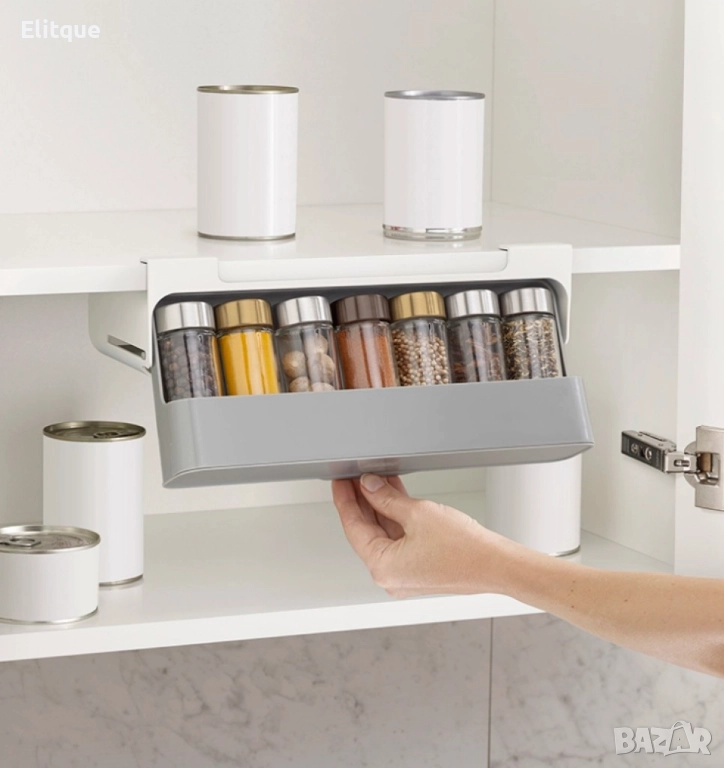 Органайзер за подправки за рафт / Органайзер / 7бр бурканчета; Органайзерът е със семпъл дизайн, който ще подхожда на всеки кухненски интериор. Той е лек и компактен. Можете да го преместите винаги, когато пожелаете, например за да го почистите.