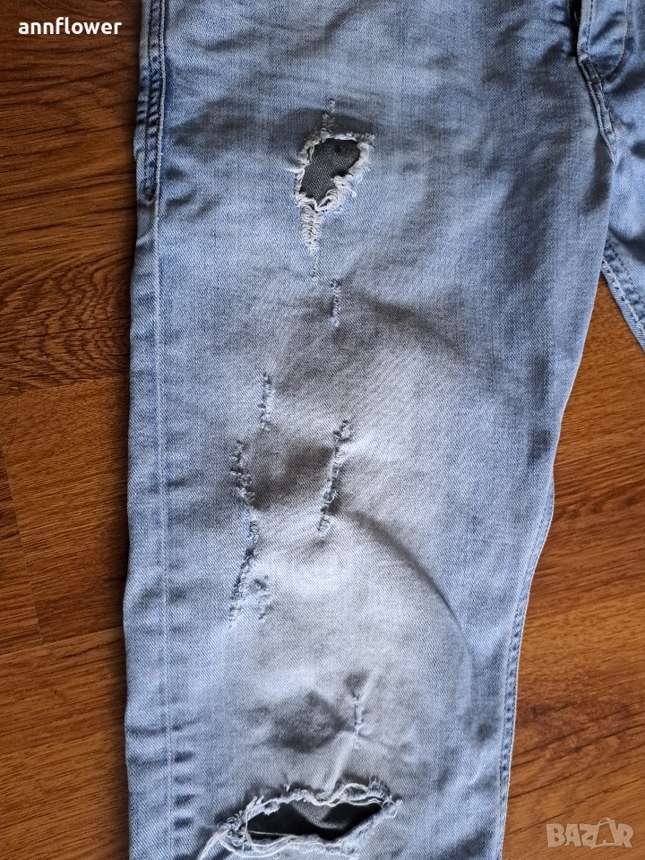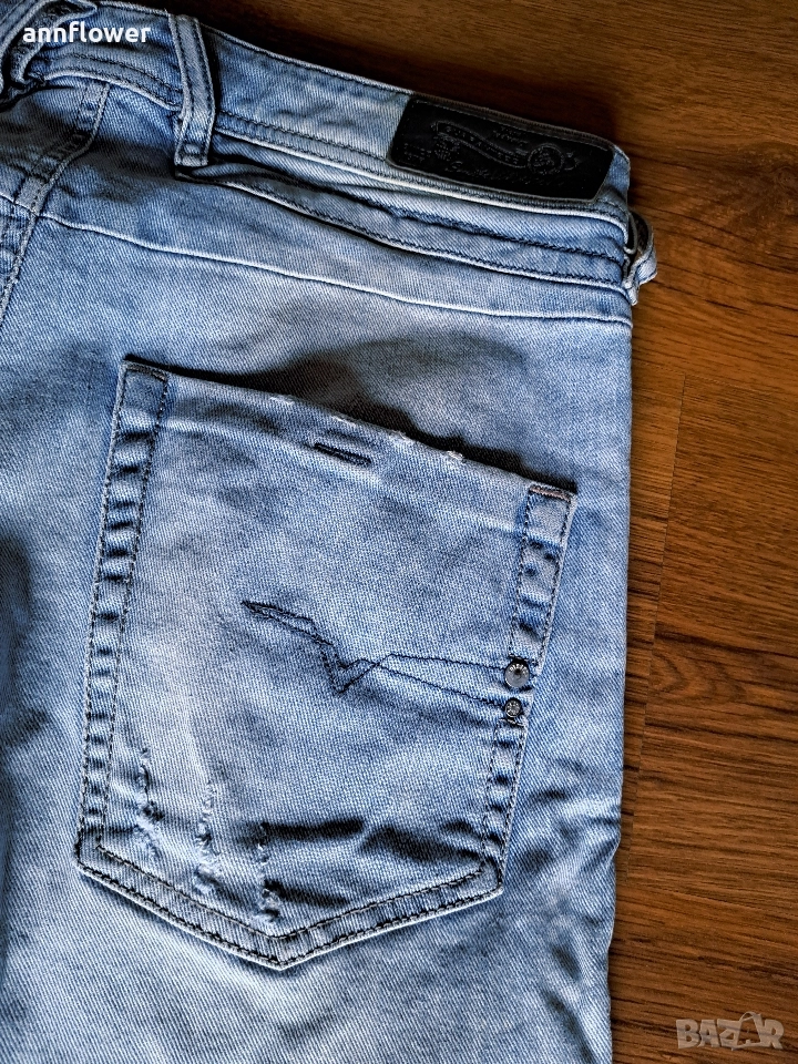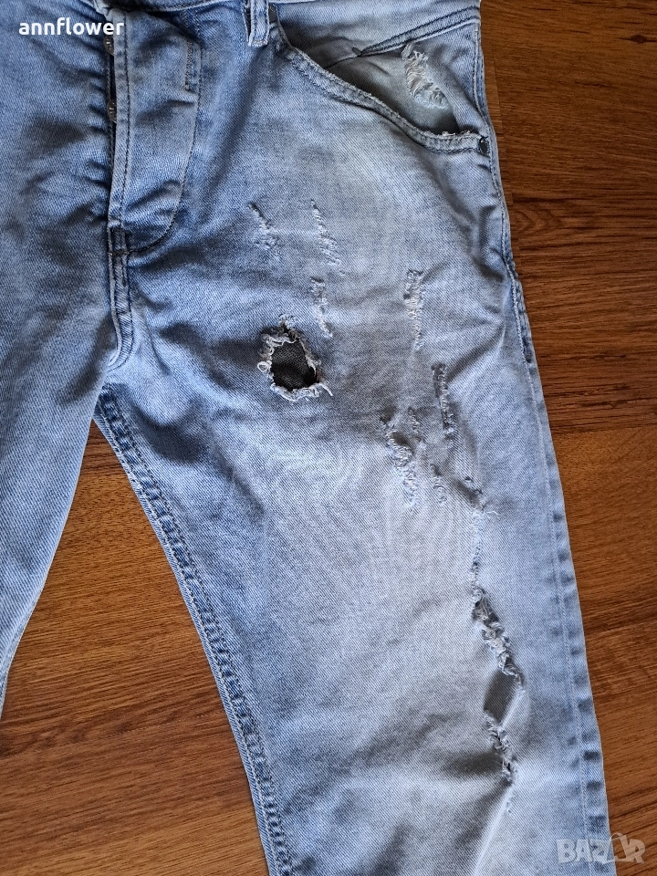 Дънките са като нови и оригинални. Материя 98% памук и 2% еластан. Размер L. Дължина 110,талия 88см, ханш 108см, ширина на крачола от горе на долу 28/20/17см.
