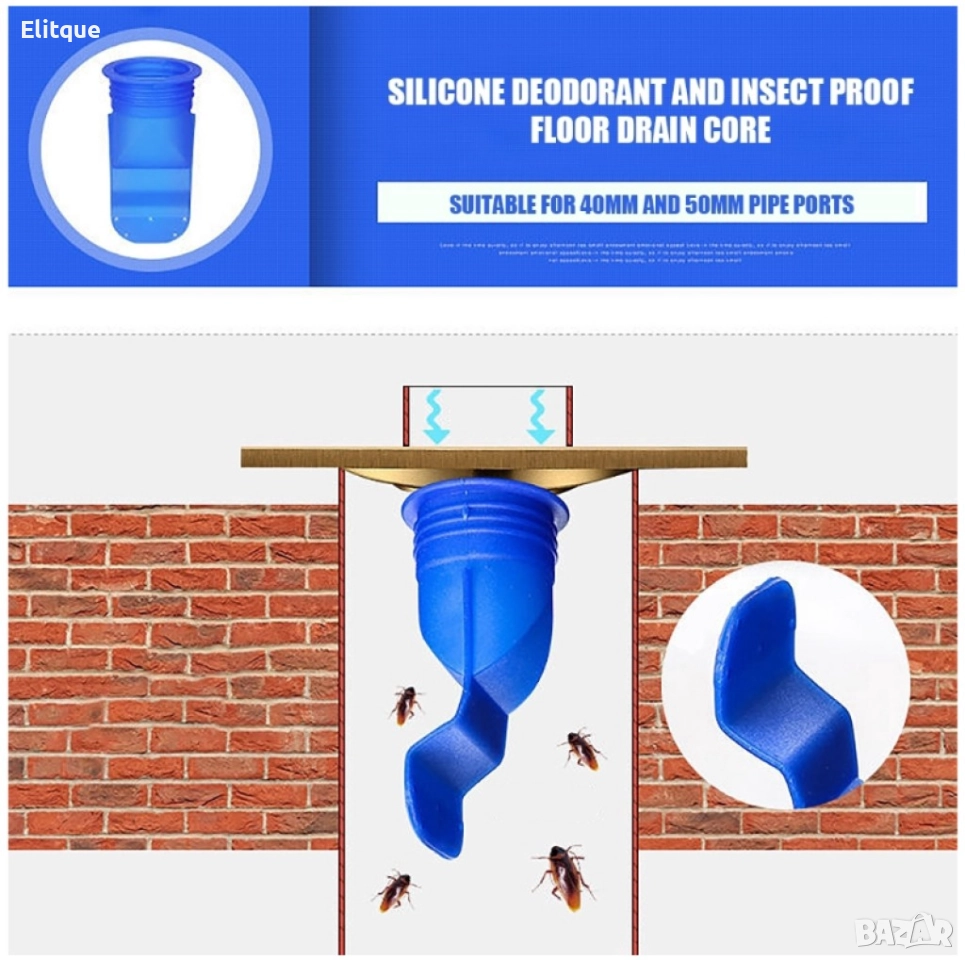 Силиконова клапа срещу миризми и хлебарки. Размер 98 х 40 мм. Материал - еко силикон. V-образна форма, осигуряваща плавно оттичане на водата. Затваря се след това.
