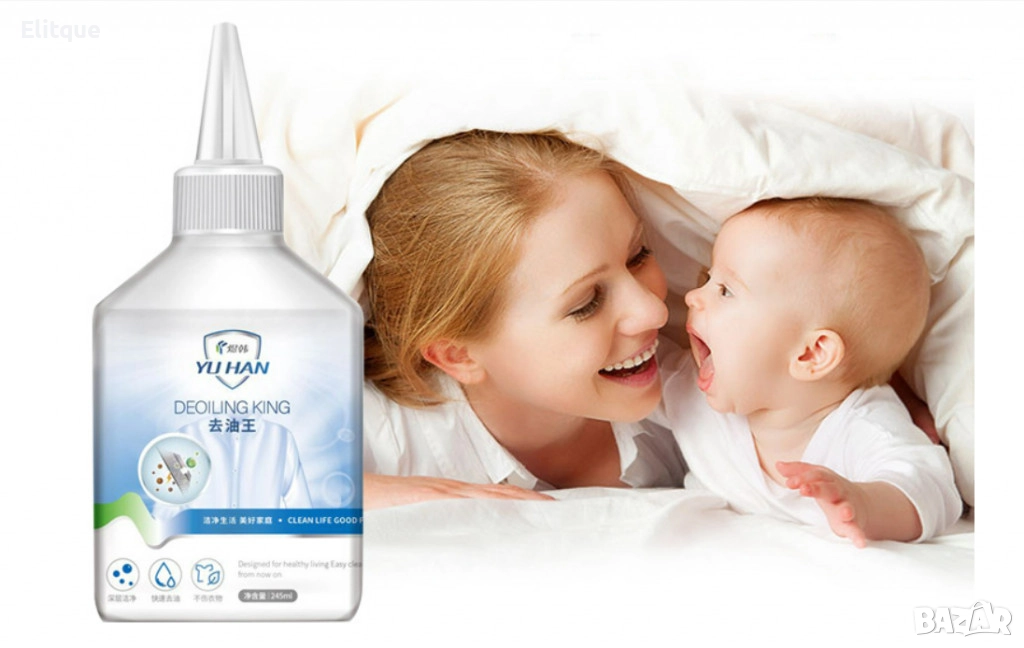 Препарат за почистване на мазни петна от дрехите/ Ефективно отстранява всякакви мазни петна, като петна от грес, различни видове мазнина, червило и др.; Не уврежда тъканта, а цвета не избледнява; Действа почти мигновено и оставя дрехите почистени; Без неприятна миризма; Нетно количество: 245 мл.