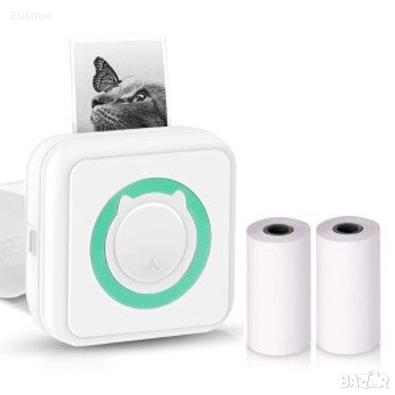 Преносим фотопринтер, използващ термичен печат (без касета с мастило). Вградени 100 mAh акумулаторни батерии. Печатаща глава с висока разделителна способност 200 dpi. Може да отпечатва снимки, етикети, QR кодове и т.н. Приложението има различни шрифтове и теми. Съвместим с всички смартфони. Комплектът съдържа - 1 бр. фото принтер, 1 бр. ролки термична хартия, 1 бр. USB кабел. (Още термо ролки могат да се закупят от книжарница, към момента при нас допълнително няма.)
