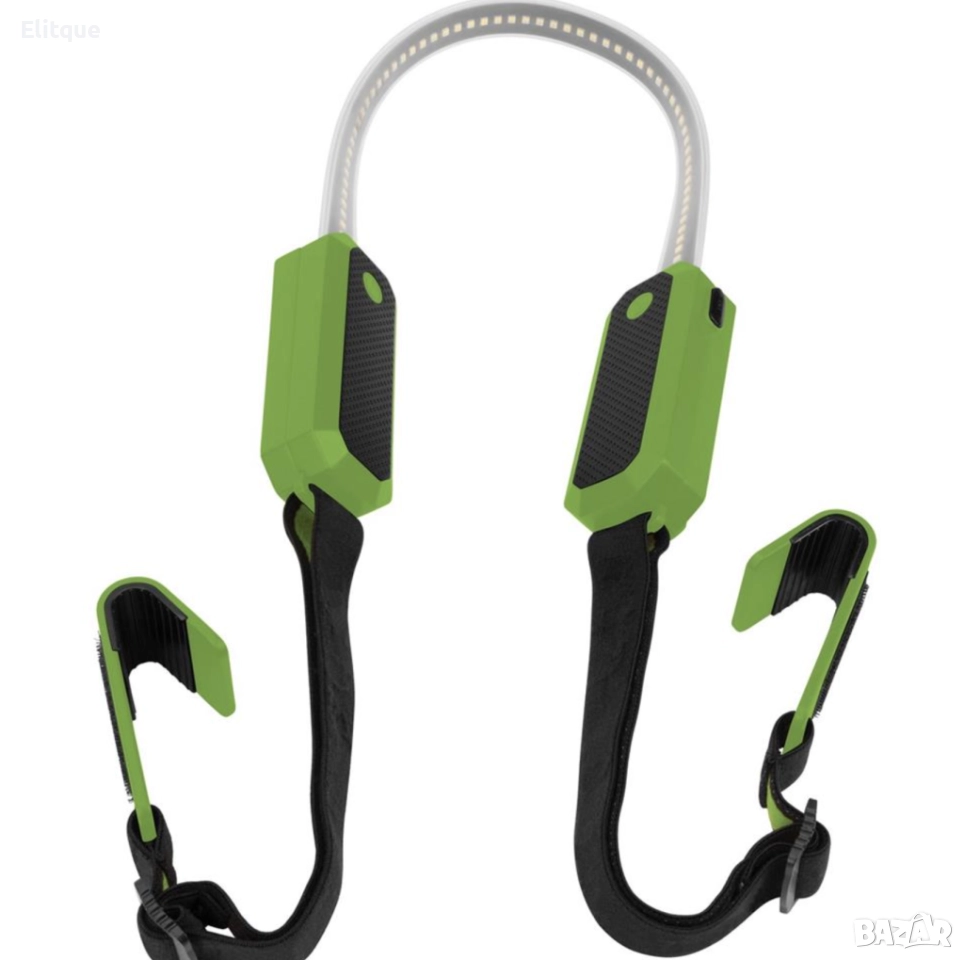 Регулируема акумулаторна LED работна лампа с 1000+ лумена. Лесно насочвате светлинния лъч, където Ви е необходим. Гъвкава 15-инчова светлинна линта с 60 широкоъгълни светодиота. Настройка за силен, среден и къс лъч. Захранва се от две литиево-йонни батерии и се зарежда с USB кабел. 1071 lm, 2,5 часа време на работа при високо ниво; 500lm, 4 часа време на работа на средно; 300 lm, 5 часа работа при ниско ниво. Поставете микро USB кабела в порта и включете в стандартен USB. Червено - зареждане, зелено - зареждането е приключило.