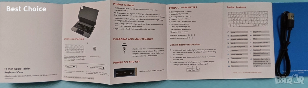 - Съвместимост: за iPad Air 5-то поколение (2022), iPad Air 4-то поколение (2020) и iPad Pro 11 (2022/2021/2020/2018); Модели A2588, A2589, A2591, A2316, A2324, A2325, A2072, A2759, A2761, A244 33,5, A27 62, A2377, A2459, A2301, A2460, A2228, A2068, A2230, A2231, A1980, A20 13, A1934, A1979