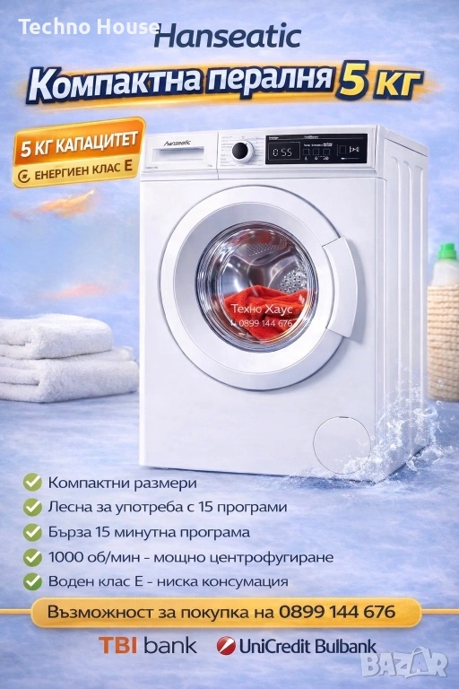 Пералня HANSEATIC HWM5T110D, 5 кг, 1000 об./мин. → Обява 52906829
