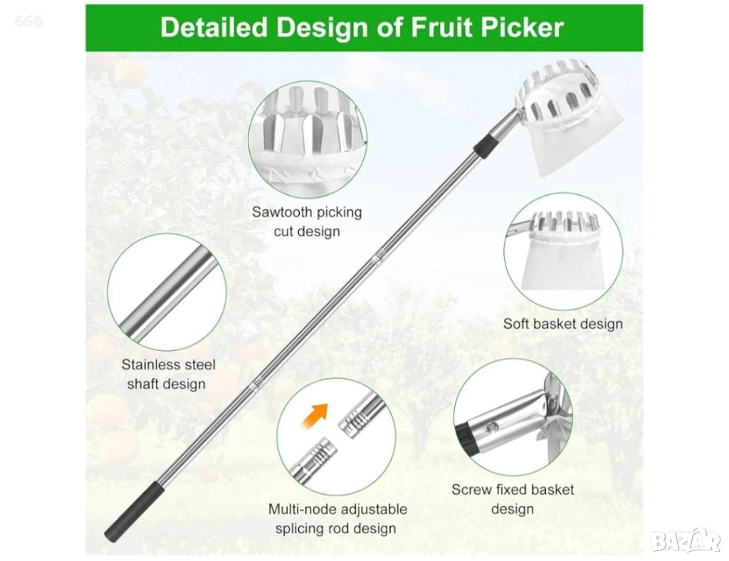Берач на плодове, инструмент за бране на плодове, снимка 1 - Други инструменти - 52907350 Берач на плодове, инструмент за бране на плодове, снимка 2 - Други инструменти - 52907350 Берач на плодове, инструмент за бране на плодове, снимка 3 - Други инструменти - 52907350 Берач на плодове, инструмент за бране на плодове, снимка 4 - Други инструменти - 52907350 Берач на плодове, инструмент за бране на плодове, снимка 5 - Други инструменти - 52907350 Берач на плодове, инструмент за бране на плодове, снимка 6 - Други инструменти - 52907350 Берач на плодове, инструмент за бране на плодове, снимка 7 - Други инструменти - 52907350 Берач на плодове, инструмент за бране на плодове, снимка 8 - Други инструменти - 52907350 1/8
