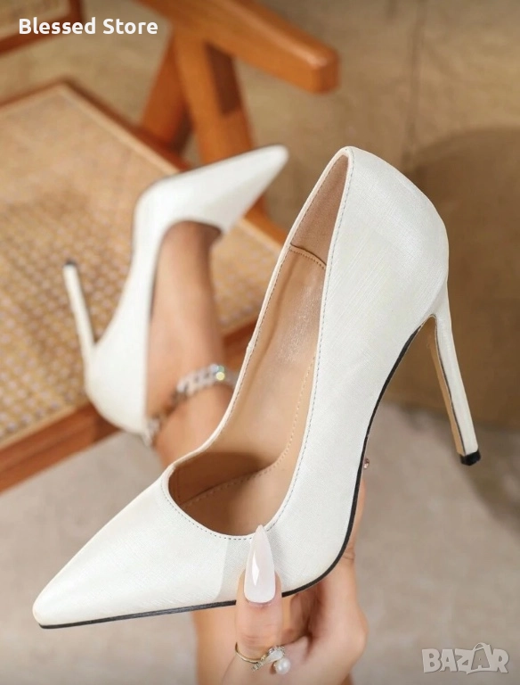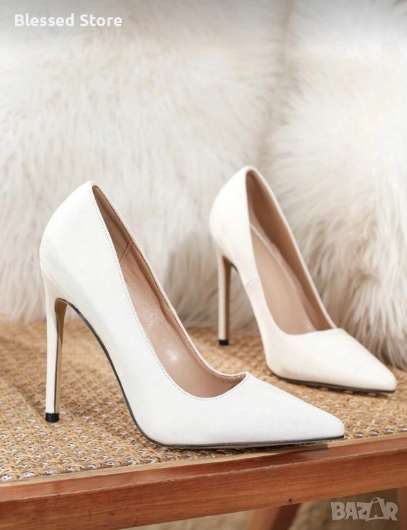 Дамски остри обувки с 11см ток. Налични в бяло. 36 номер - 23см стелка. Обувките са НОВИ! Последни бройки!