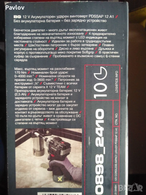 Импакт Parkside  70 Nm 12V - нов, гаранция 5г Лидл БГ → Обява 52907457