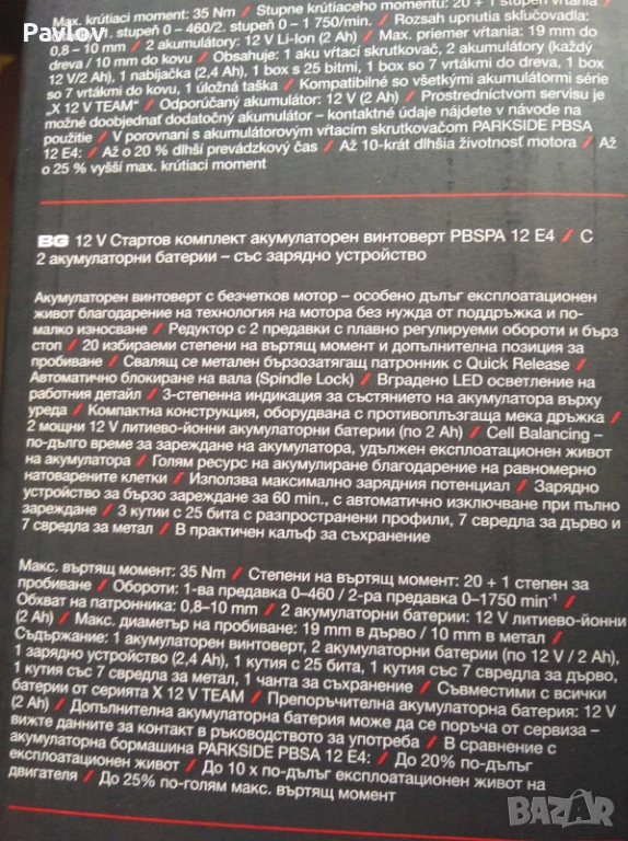 Винтоверт Parkside 35Nm 12V -пълен комплект; гар-я 5г Лидл БГ → Обява 52907531