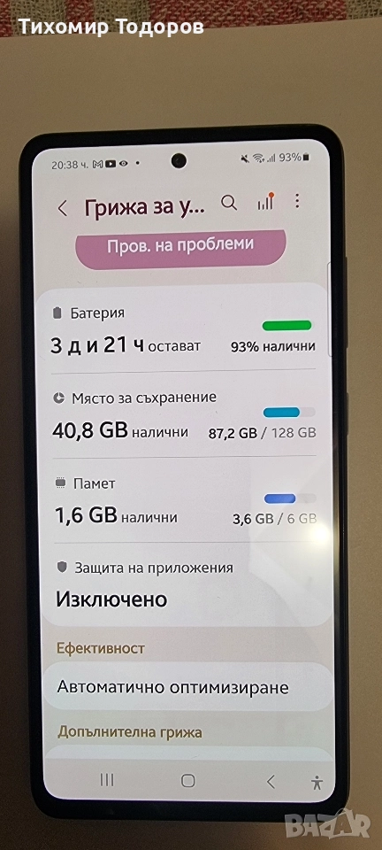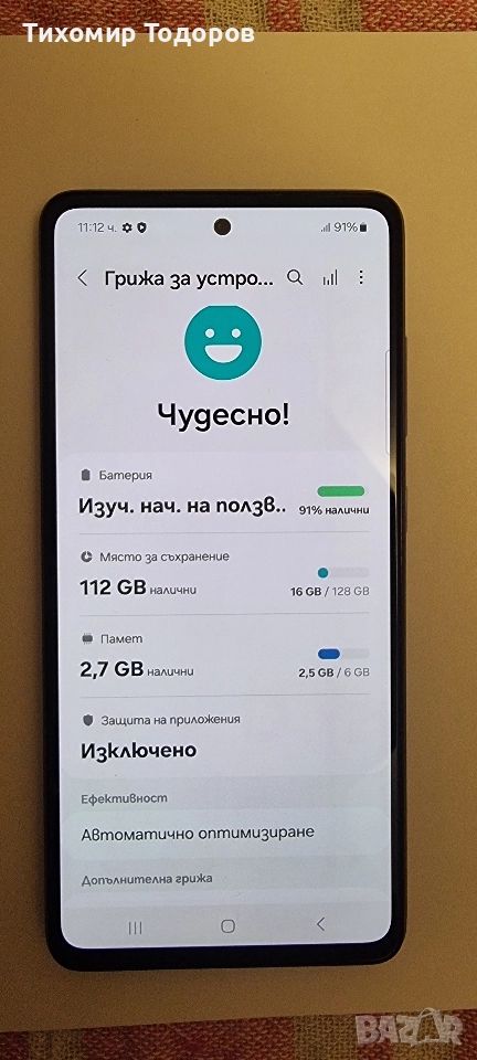 Работи перфектно: Памет 128gb, Ram 6 gb.