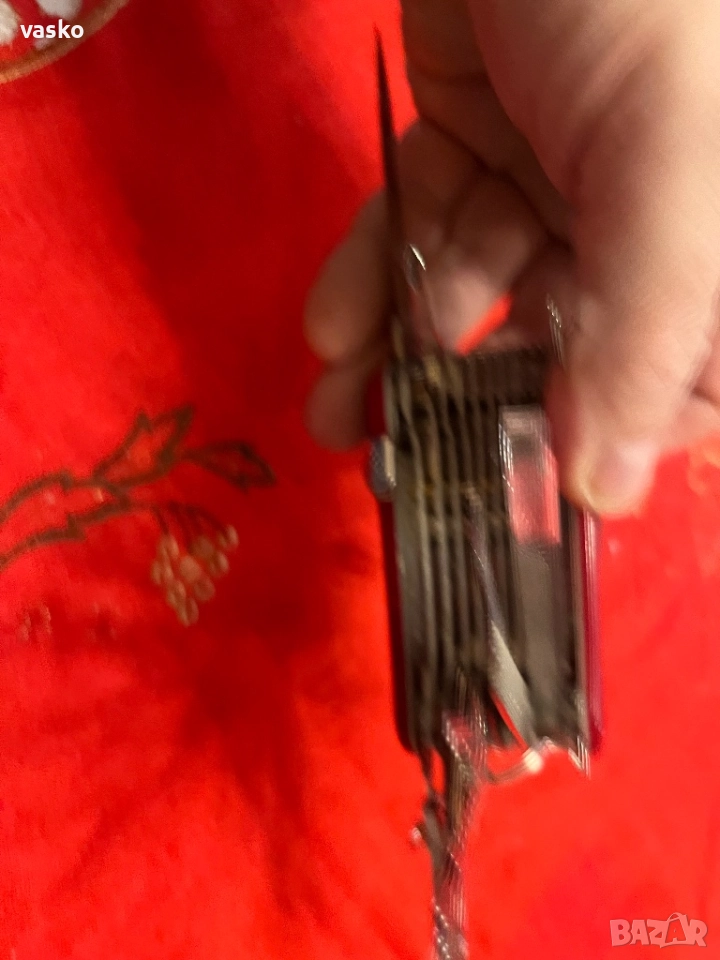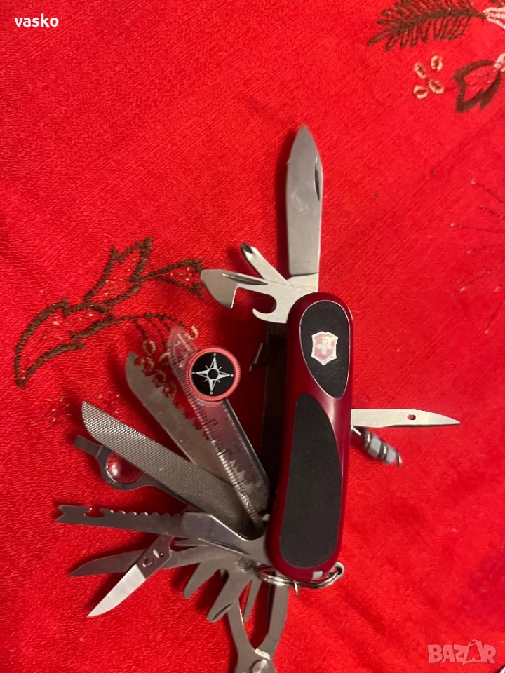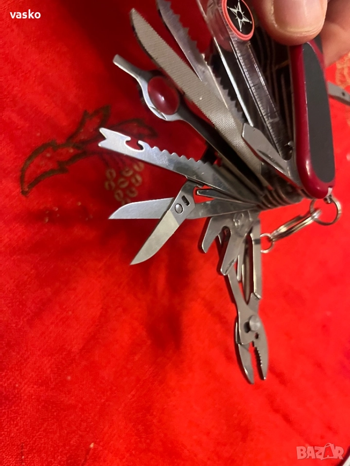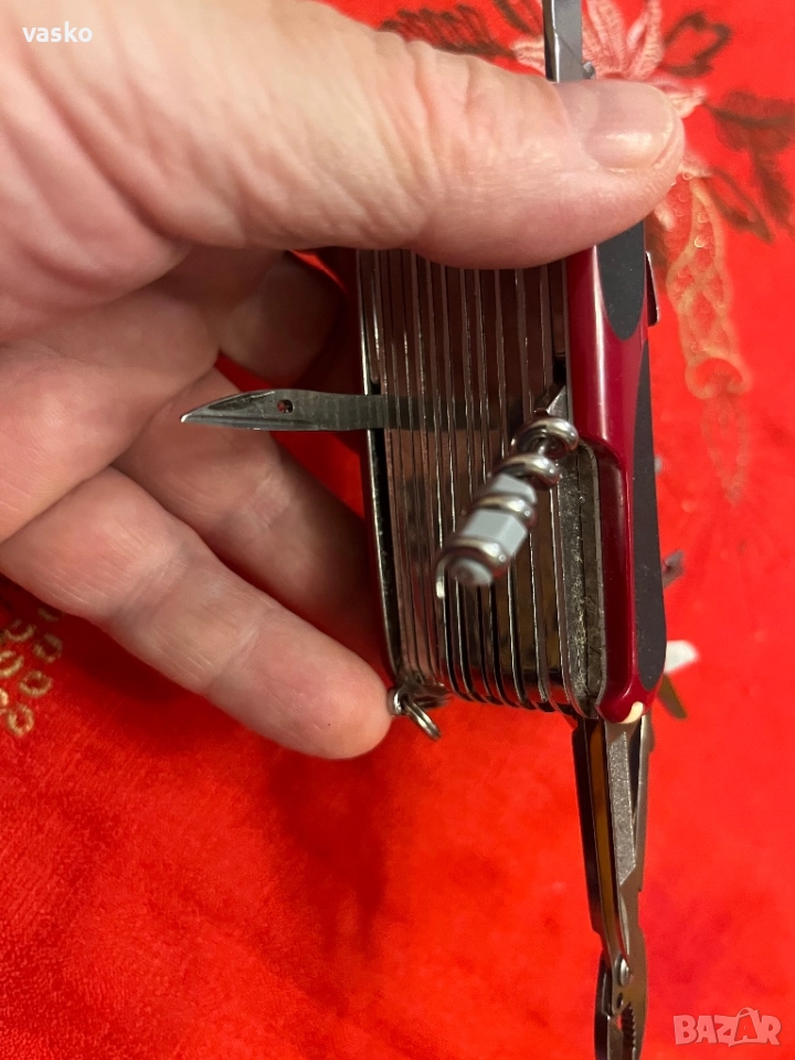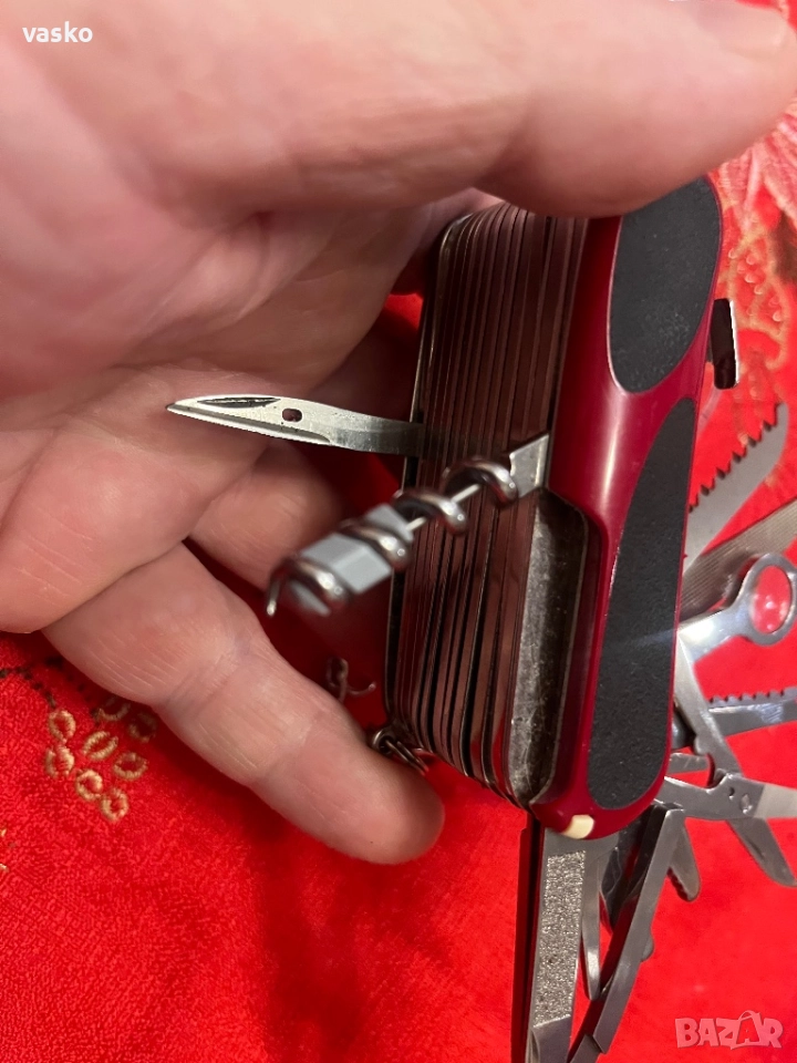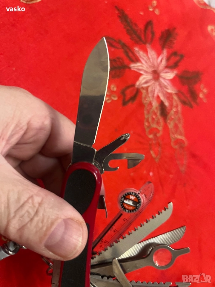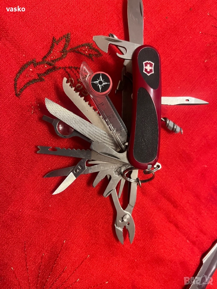 Victorinox в много добро състояние.Дръжка евогрип,има даже гаечен ключ,компас,клещи,заключване на голямото острие в отворено положение-за да се прибере се натиска металния бутон до острието.Всичко е перфектно,купувано е ново,много малко е ползвано,перфектни инструменти,перфектни пружинки,минимални следи по чирените от носете в джоба.НЕ БЪРКАЙТЕ НОЖЧЕТО С SWISSCHAMP-там няма компас,няма гаечен ключ,няма евогрип дръжка,няма заключване на острието.МОЛЯ НЕ МЕ ЗАНИМАВАЙТЕ С СМЕШНИ ОФЕРТИ И ГЛУПАВИ КОМЕНТАРИ-НЯМАМ НУЖДА И НЕ МЕ ИНТЕРЕСУВА!АКО ВИ Е СКЪП СИ КУПЕТЕ ДРУГ-НОЖЧЕТА МНОГО!С КУЛТУРНИТЕ ХОРА ЩЕ ИМА КУЛТУРНА КОМУНИКАЦИЯ-С ДРУГШТЕ НИКАКВА И ЩЕ БЪДАТ БЛОКИРАНИ!