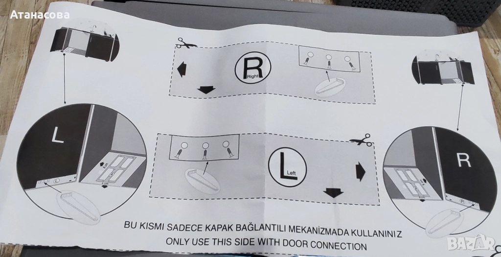 В комплекта са включени също така: инструкция, шаблони за закрепване и винтове за дърво