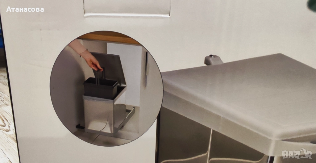 Минимални размери на шкафа, в който ще се монтира кофата: мин. ширина - 35 см; мин. дълбочина - 39,5 см; мин. височина приблизително - 45 см;