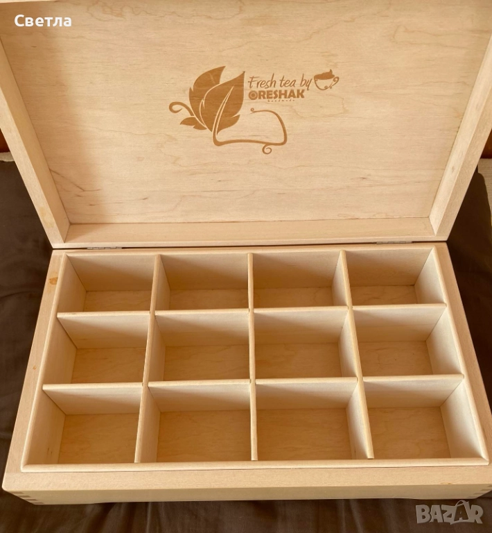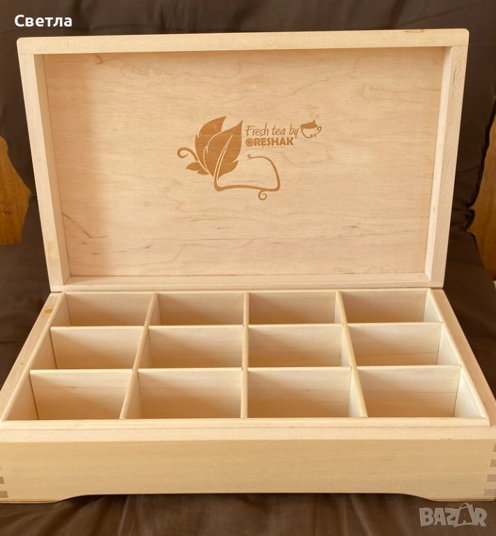 КУТИЯ ЗА ЧАЙ, ръчна изработка от ЛИПА, НОВА,Стилен дизайн, с дванадесет секции, за съхранение , снимка 1 - Други стоки за дома - 52907947 КУТИЯ ЗА ЧАЙ, ръчна изработка от ЛИПА, НОВА,Стилен дизайн, с дванадесет секции, за съхранение , снимка 2 - Други стоки за дома - 52907947 КУТИЯ ЗА ЧАЙ, ръчна изработка от ЛИПА, НОВА,Стилен дизайн, с дванадесет секции, за съхранение , снимка 3 - Други стоки за дома - 52907947 КУТИЯ ЗА ЧАЙ, ръчна изработка от ЛИПА, НОВА,Стилен дизайн, с дванадесет секции, за съхранение , снимка 4 - Други стоки за дома - 52907947 КУТИЯ ЗА ЧАЙ, ръчна изработка от ЛИПА, НОВА,Стилен дизайн, с дванадесет секции, за съхранение , снимка 5 - Други стоки за дома - 52907947 1/5