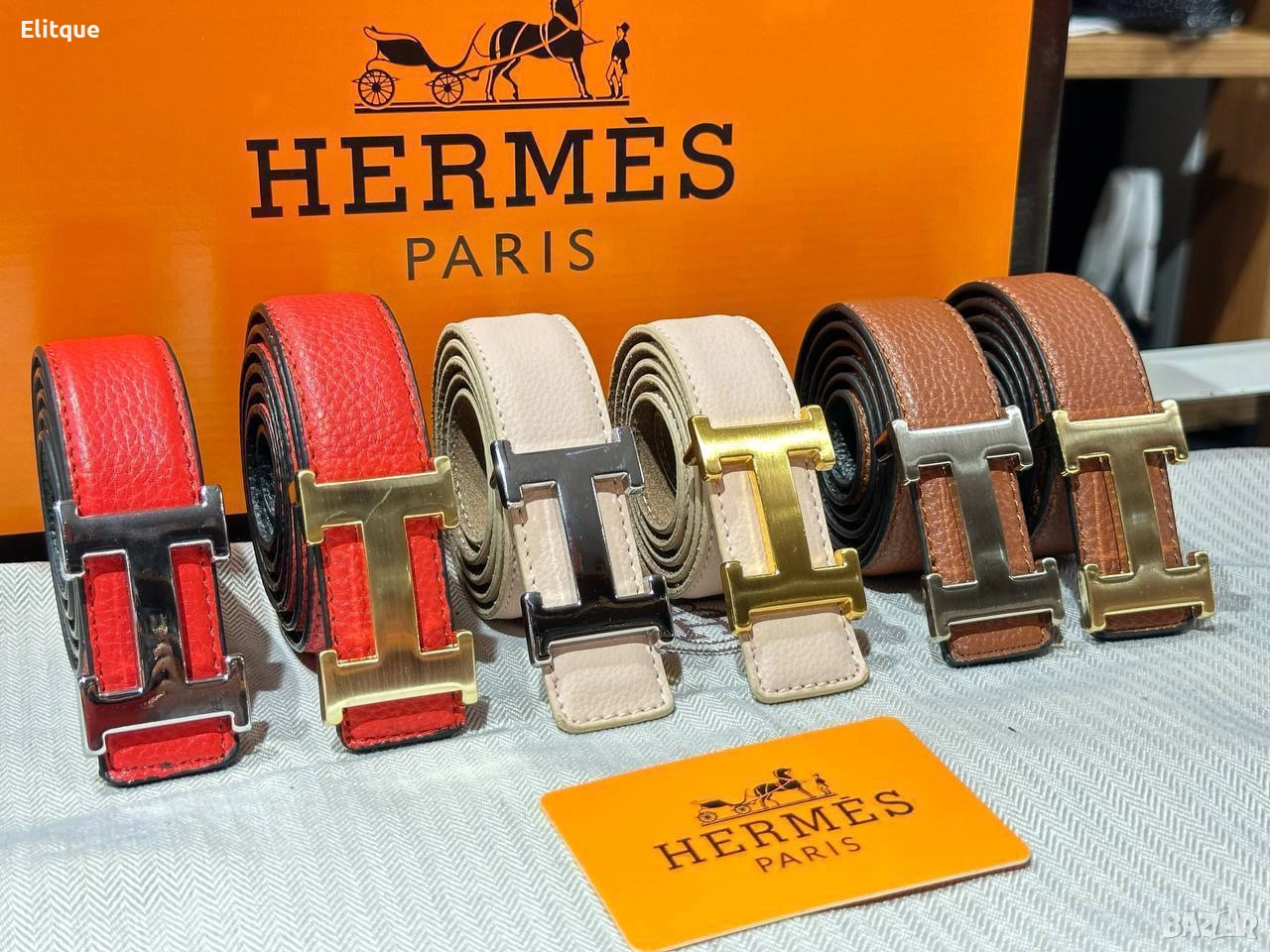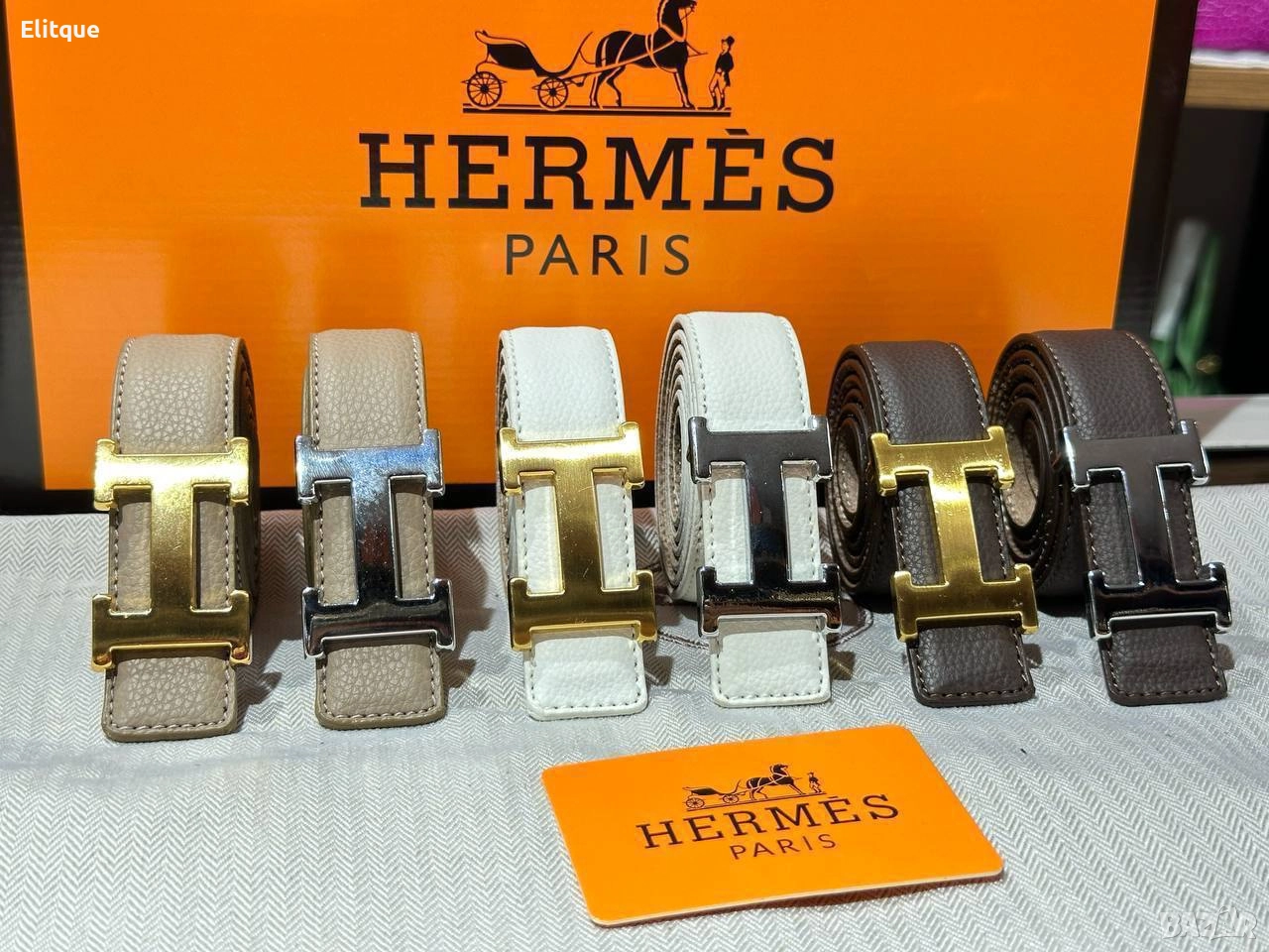 колани от естествена кожа в кутия Hermes