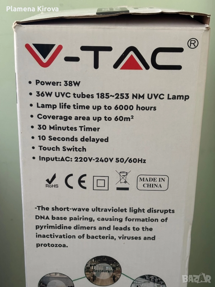 Бактерицидна лампа със стерилизация Ultraviolete и Ozon → Обява 52908397