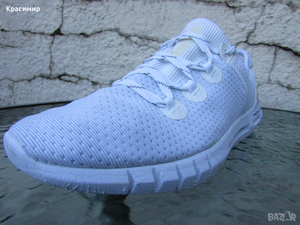 Мъжки маратонки Under Armour HOVR SLK, изработени в елегантен бял дизайн и лека конструкция, подходящи за бягане и фитнес. Горната част е изработена от дишаща мрежа, осигуряваща оптимална циркулация на въздуха по време на тренировка. С усъвършенствана технология UA HOVR, се намалява неприятното усещане от удар върху стъпалото, като се връща енергията и се намаля умората, а контурираната подметка подобрява сцеплението и комфорта по време на физическа активност. Номер 41 с дължина на подметката 26 см. Цената е без коментар.