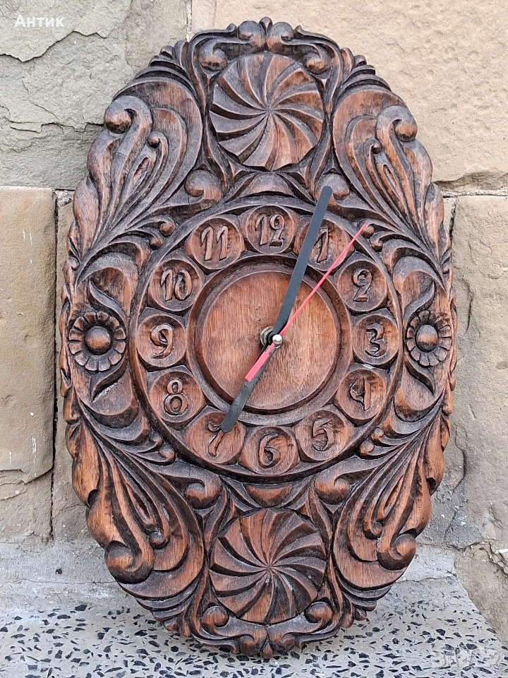 Красив Стар Стенен Часовник Дърворезба Масив от Соца → Обява 52908774