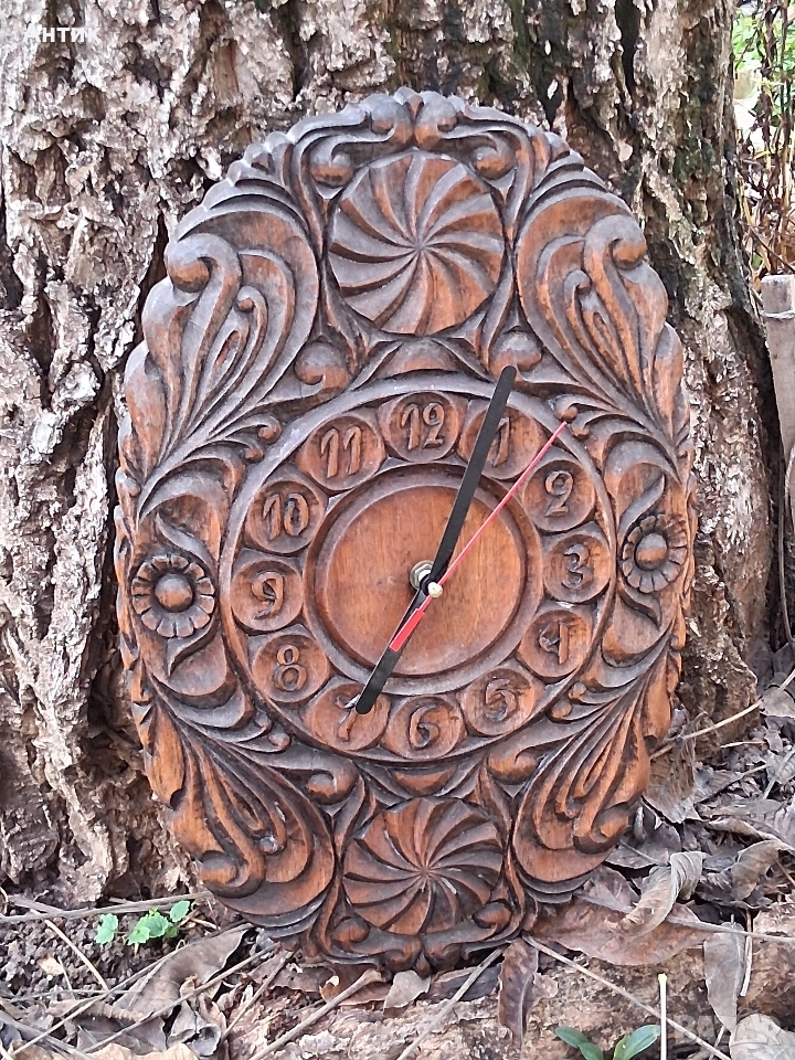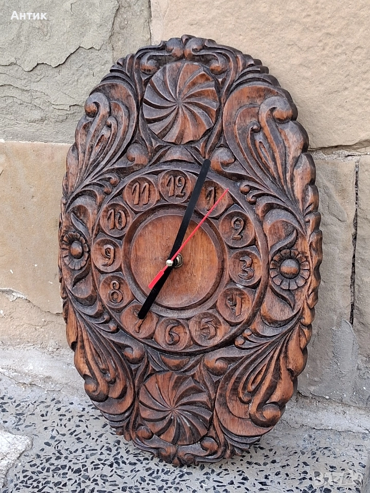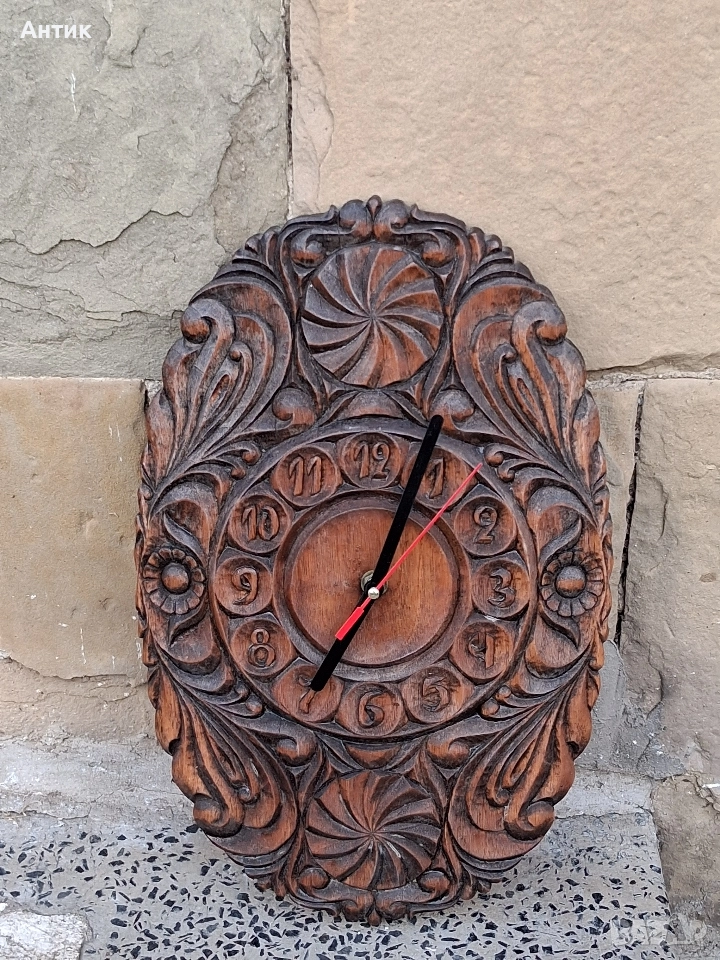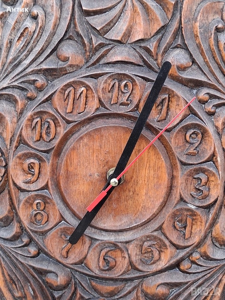Красив Стар Стенен Часовник Дърворезба Масив от Соца '70-те год. Размери 38 см. Дебелина 2 см. Тегло 1,450 кг. Чудесен за Интериор и Декорация Изпращам с Еконт