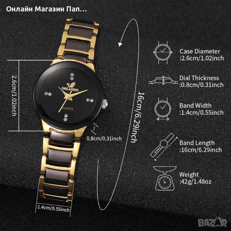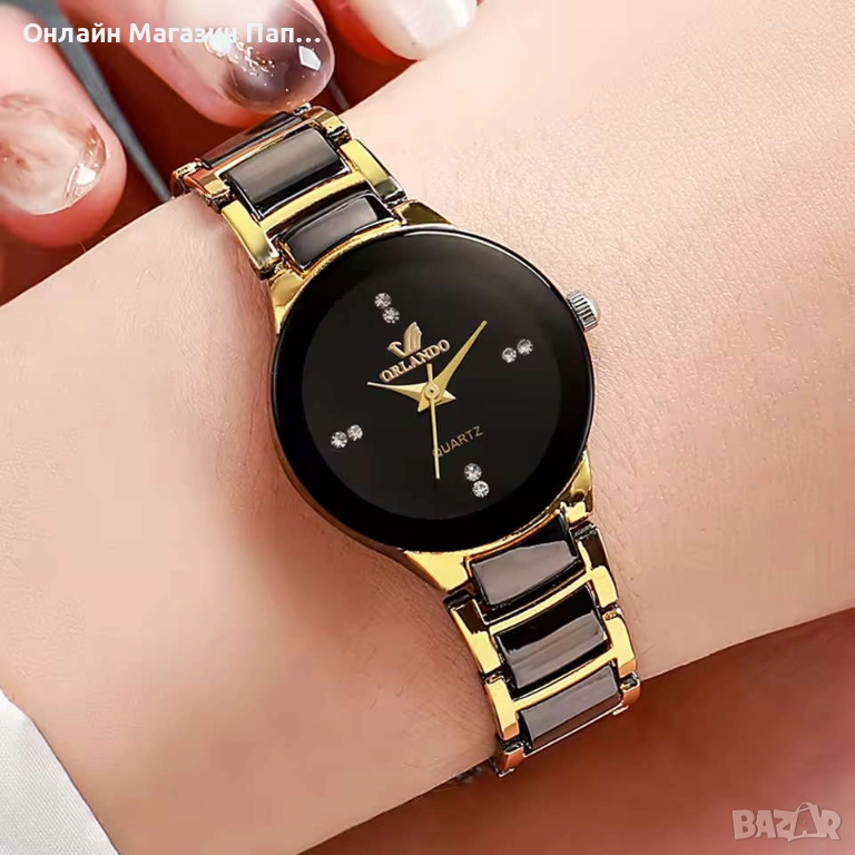 Моделът работи с надежден кварцов механизъм, осигуряващ точност и удобство при ежедневно носене. Металната верижка в черно и златно е удобна и сигурна, благодарение на сгъваема закопчалка със защита.